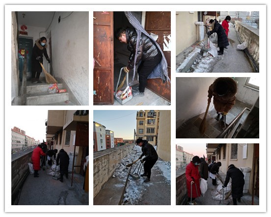 活动中,党员志愿者们干劲十足,充分发扬了不怕脏不怕累的精神,他们深入社区重点区域,清理楼道、绿化带、背街小巷等环境黑点,规整共享单车摆放,清扫积雪。与此同时,党员志愿者们还积极向社区居民宣传垃圾分类等知识,带动小区居民积极参与环境卫生综合整治,并指导居民对生活垃圾定点投放、分类收集。