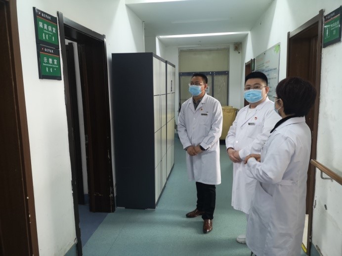 为做好疫情常态化防控工作,强化防控责任、细化防控措施,巩固疫情防控成果,保障来院患者就诊安全,3月29日上午,我院副院长杜建军、感染控制科负责人何淑花深入我院门诊部、干部病房、住院部一号楼、住院部二号楼进行现场督导检查。
