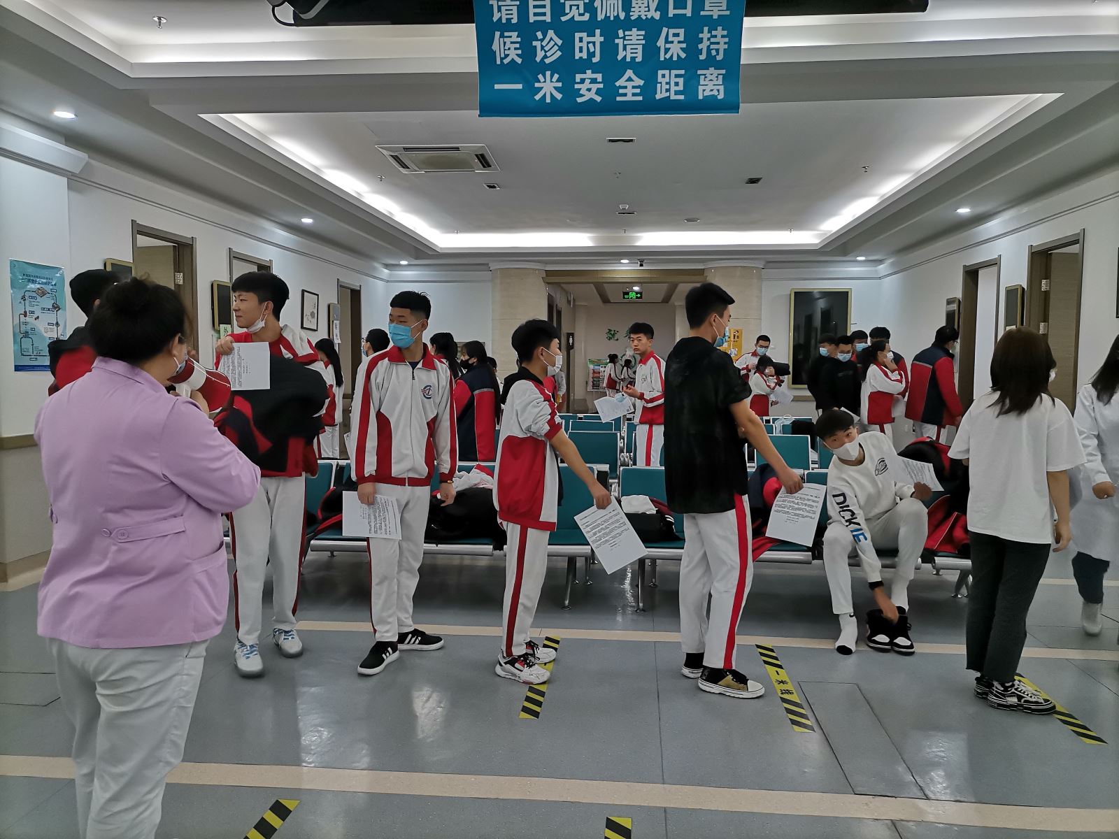 为全面做好防疫常态化时期高考体检工作,我院高度重视,紧锣密鼓,在抓好疫情防控的同时,将体检工作细化到人、责任到人,加强各个环节的防控和监督工作,减少考生人员流动,避免考生聚集;同时,健康体检中还开展了专项业务培训,明确招生考试体检中医护人员的各项具体职责及各环节工作纪律、工作要求以及工作规程等。在体检过程中, 医院严把入场关口,增派安保人员,禁止无关人员入内,设置急救应急点,配备急救物品,在各个检测点设置“一米线”标识,确保学生体检时不扎堆、错峰体检;对体检区域增加消毒次数,加强体检工作场所的通风消毒和卫生安全管理,保证考生有一个安全干净的体检环境,切实做到了疫情防控与高考体检“两手抓、两不误”。我院健康体检中心医护人员认真负责、严谨的工作态度,得到了学校师生们的一致好评。