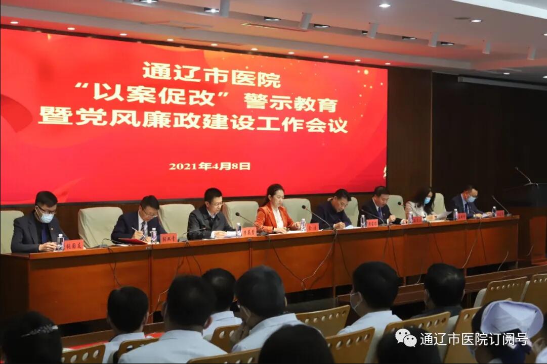 4月8日下午,通辽市医院召开“以案促改”警示教育暨党风廉政建设工作会议。会议邀请了市卫健委党组成员、副主任周宝德,市纪委监委派驻卫健委纪检监察组组长、卫健委党组成员李英哲。党委书记金洁主持会议。