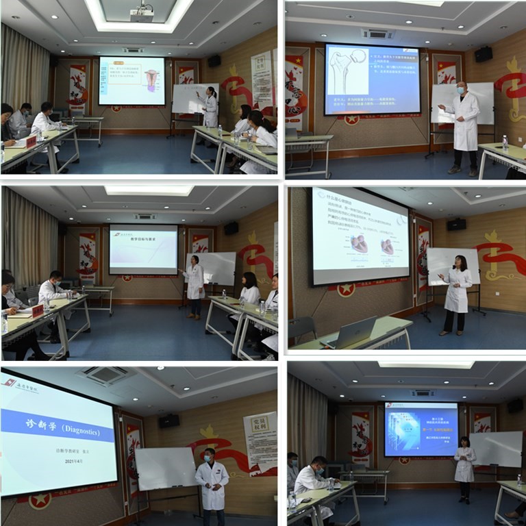 随后,内科教研室主任吴哲、外科教研室主任姚墨、妇科教研室主任崔艳红、流行病教研室主任张浩、诊断学教研室主任张立、儿科教研室李珍等六位老师进行了精彩的试讲课程分享,老师们讲授内容清楚、透彻,条理分明、重点突出,对医学术语和部分关键词能够运用英汉双语和形体语言授课,讲授疑难和重点内容时,一些老师将板书画图和多媒体结合,使课程生动易懂,还有的教师讲课风趣幽默,充满活力,令人印象深刻。