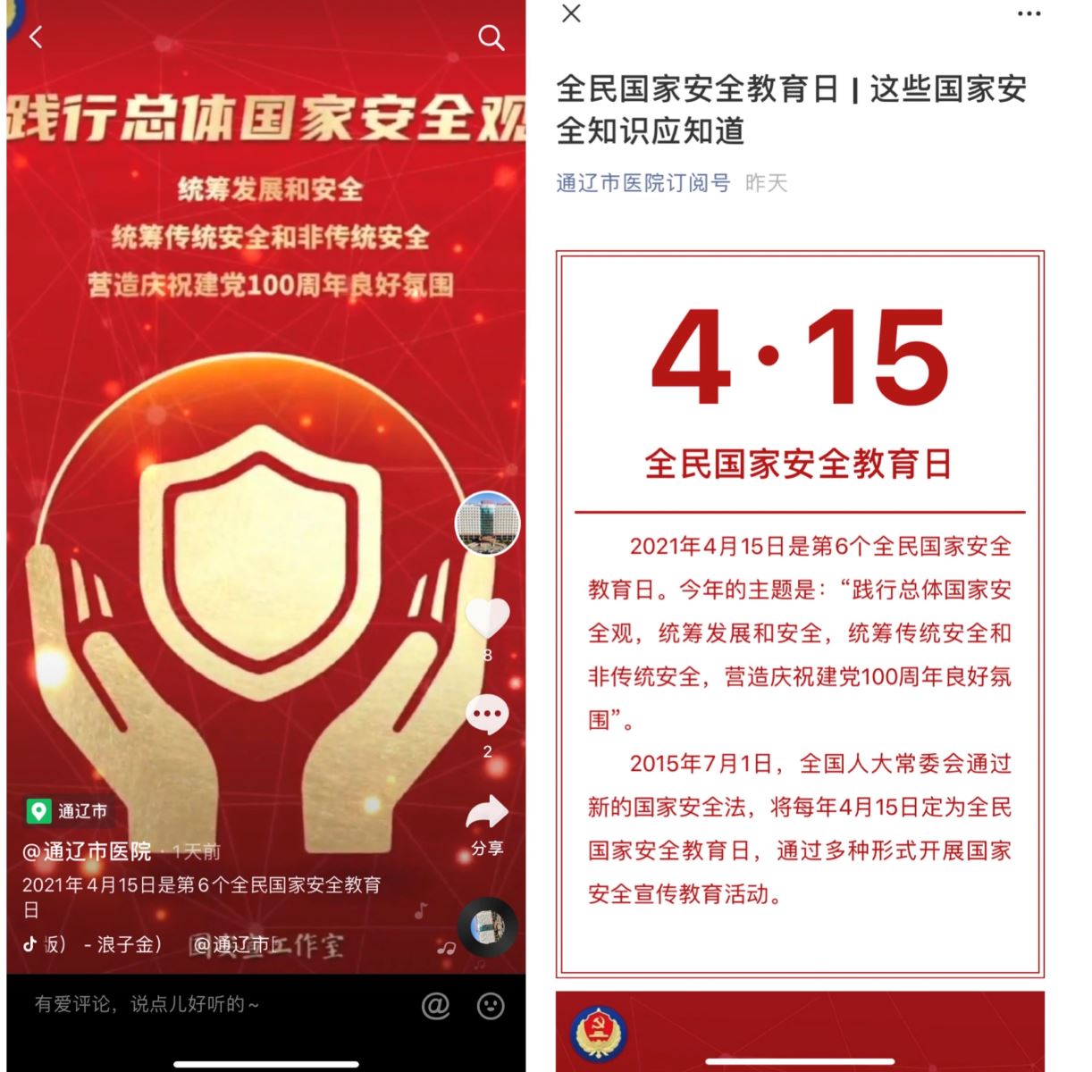通过开展一系列的宣教活动大大加深了我院干部职工和我市民众对国家整体安全观的认识和理解,树立了正确的国家安全观,提高了国家安全防范意识和防范能力,增强了维护国家安全的自觉性,让国家安全意识真正融入生活,成为习惯,助力筑牢祖国北疆安全稳定屏障,以优异成绩迎接中国共产党成立100周年。