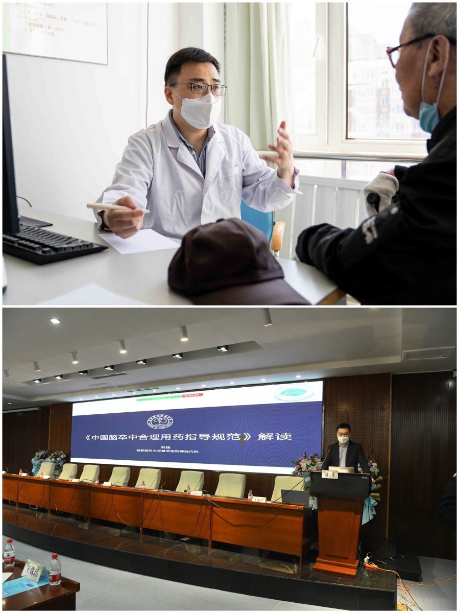 会上,刘佳教授解读了《中国脑卒中合理用药指导规范》,并强调脑卒中质控是不断提升脑卒中管理水平的关键手段,在工作中要着力加强沟通与交流,促进脑卒中管理质量不断提高。随后,我院王姝瑶、张建辉、徐鹏、赵林、徐耀铭、明旭颖六位卒中专家分别就通辽地区卒中中心、卒中急救地图建设现状,脑卒中早期识别与诊疗策略、脑血管狭窄择期介入治疗、颈动脉狭窄的外科治疗、替罗非班治疗非心源性急性缺血性脑卒中的研究进展、卒中患者的健康管理与随访等热点话题与参会人员进行交流和现场互动,会议气氛非常活跃,取得了预期的良好效果。刘佳教授本次莅临我院除参与会议外,还在院内举行了义诊相关活动,造福广大患者。
