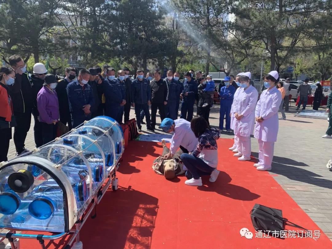 此次活动主题为“防范化解灾害风险,筑牢安全发展基础”,旨在通过活动推进防灾减灾知识、应急救援技能进企业、进农村、进社区、进学校、进家庭。活动中,我院组成的应急救护队伍现场进行了装备和应急物资展示,介绍了我院的院前急救体系以及院前转运、长途转运、负压转运三类救护车的详情。此外,应急救护队伍还围绕医疗应急救援知识向在场群众进行宣教,利用模拟人现场演示了心肺复苏的方法和要点,并邀请在场群众共同尝试模拟抢救。在我院医务人员的悉心宣教下,活动现场围观群众众多,互动氛围活跃,产生了优秀的宣传效果和良好的社会效应。