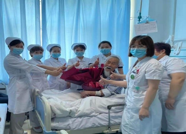 刘殿和老人于5月15日因急性脑梗死收入我院第三党支部神经内一科病区进行治疗,当神经内一科的医护人员得知刘殿和老人是参加过四平战役的老红军时,崇敬之意油然而生。