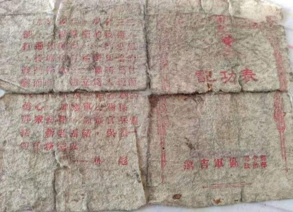 刘老的儿子向我们展示了当年用羊毛制成的记功表,尽管因为年代遥远,勋章上面的字迹早已模糊不清,但这是解放战争后期艰苦生活后留存下来的唯一的纪念。