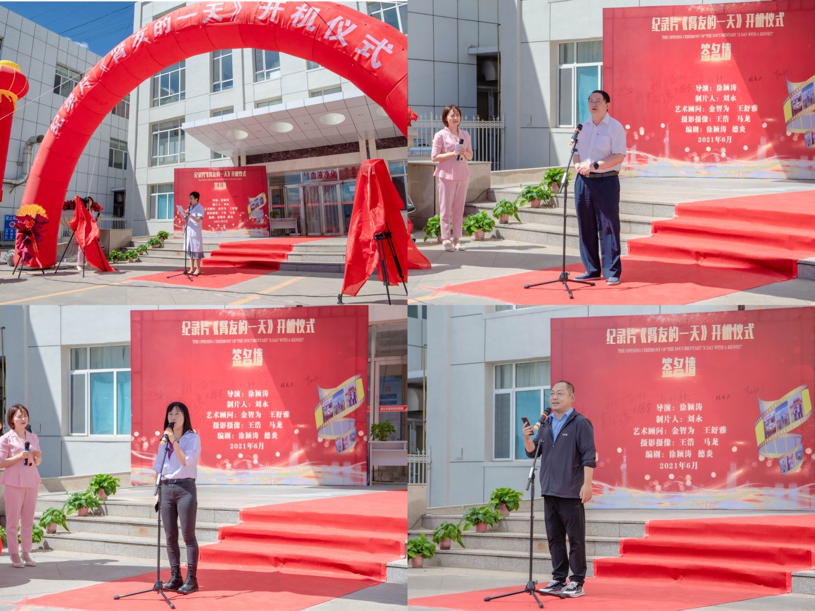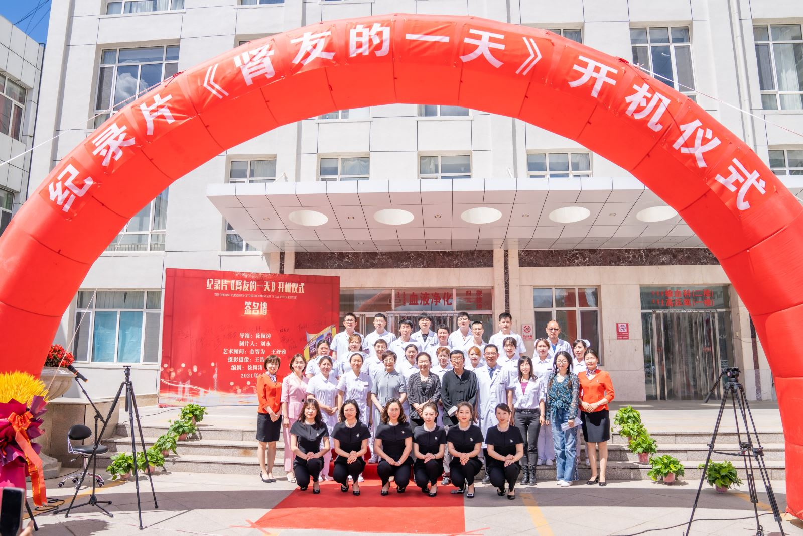 为庆祝中国共产党成立100周年,6月6日上午,由通辽市医院血液净化中心和内蒙古民族大学文学院联合摄制的纪录片《肾友的一天》开机仪式在我院隆重举行。通辽市人大常委会教科文卫委员会主任程惠民,内蒙古民族大学文学与新闻传播学院党总支书记王振宇,院长郝青云,通辽市文化旅游广电局党组书记、局长赵航,通辽市医院党委书记金洁,通辽市医院副院长杜艳秋,通辽市图书馆馆长王蒙,内蒙古民族大学文学与新闻传播学院党总支副书记张敬周,副院长孙艳艳,副院长王金双出席开机仪式,通辽市医院血液净化中心的全体医护人员和数十位肾友参加了本次开机仪式。