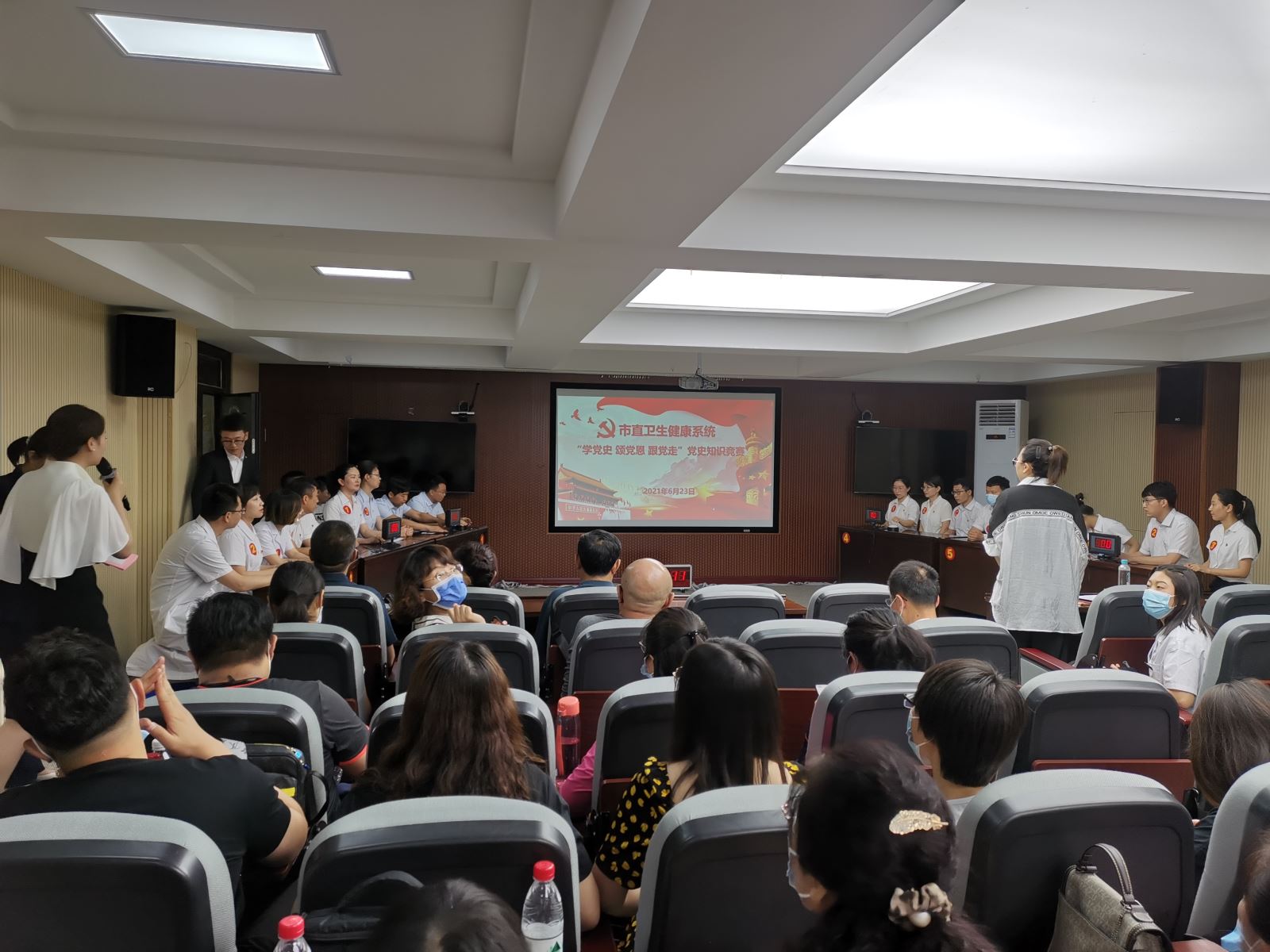 为庆祝中国共产党成立100周年,扎实推进党史学习教育在卫生健康系统深入开展,6月23日,市直卫健系统举办了“学党史、颂党恩、跟党走”党史知识竞赛。我院第一党支部周婷、焦丽佳,第八党支部刘春林代表医院参赛并荣获第一名。