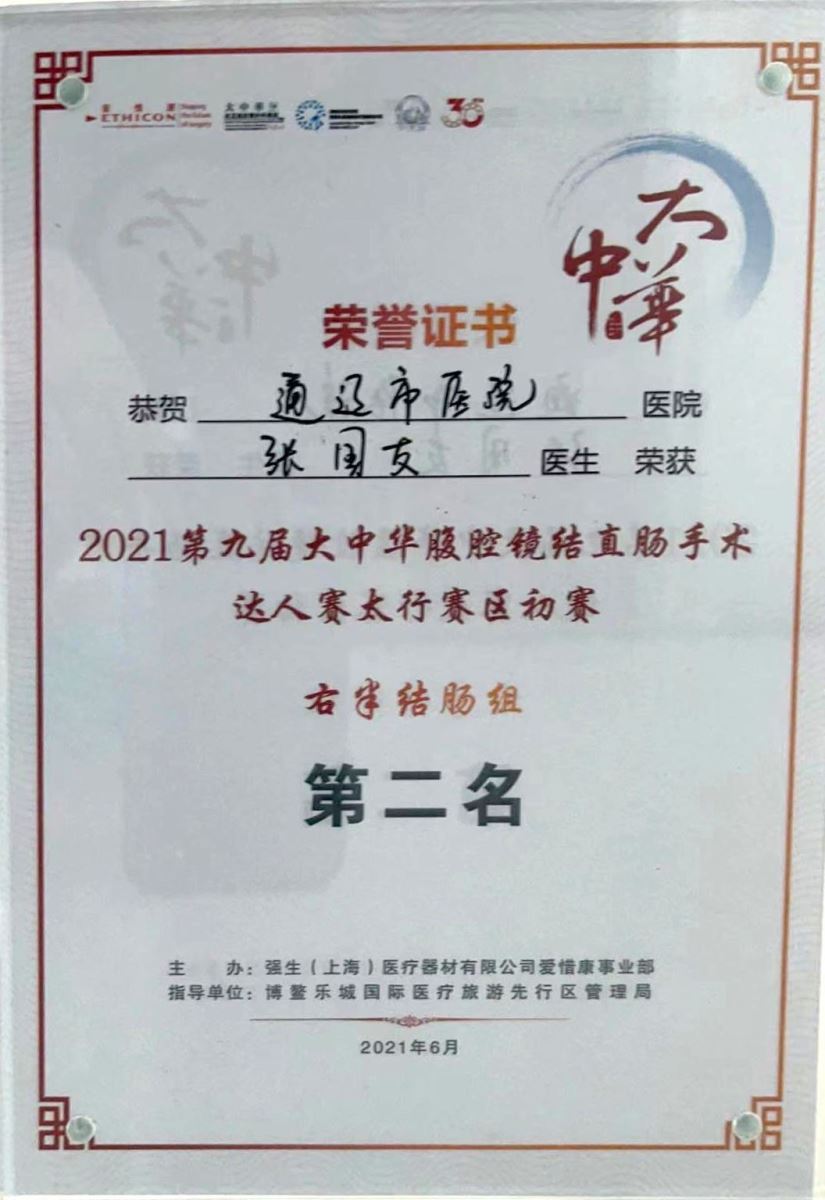 连日来,我院在党史学习教育的引领下,全院上下凝聚起强大的干事创业力量和浓厚的创先争优氛围。在一年一度的大中华腹腔镜结直肠手术达人赛中,我院副院长、胃肠外科副主任医师张国友经过线上海选、线下省区赛选拔,凭借精湛的操作技术在太行赛区初赛右半结肠组荣获第二名,本次太行赛区集结了河北、山西、内蒙古三个省区的选手,而张国友副院长成为内蒙古自治区唯一进入下一轮比赛的选手。