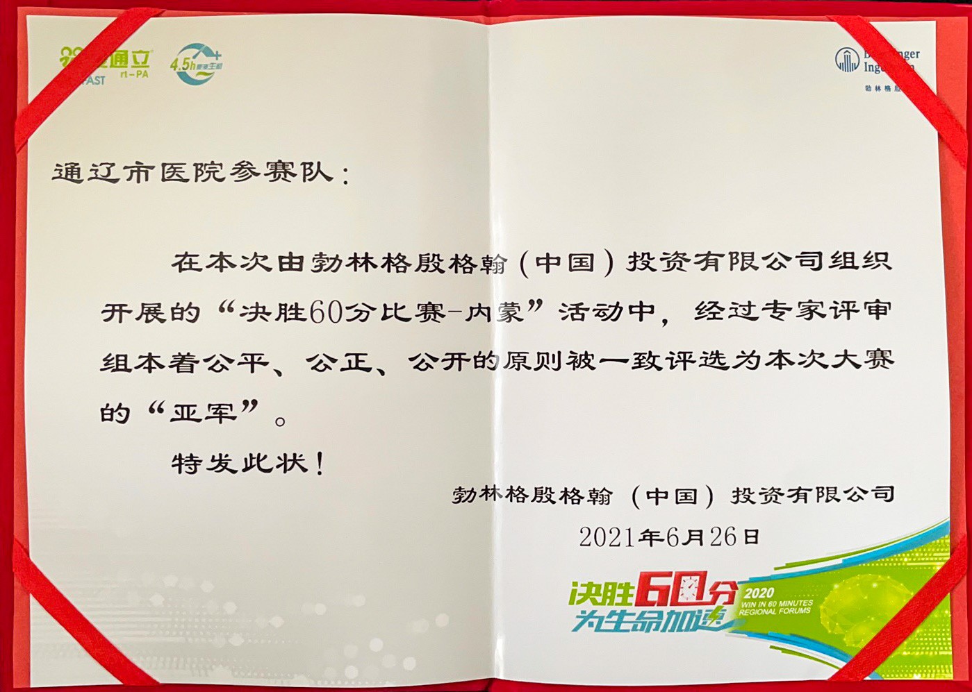 日前,我院在参加自治区“决战60分 为生命加速”脑卒中知识大赛中,凭借扎实深厚的专业知识和沉着冷静的临场发挥,荣获比赛亚军。