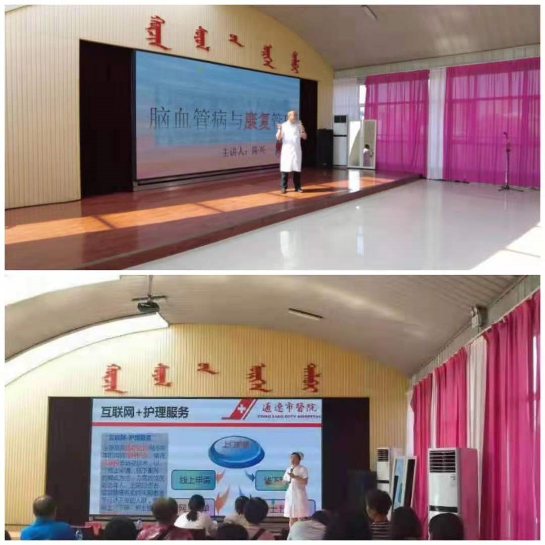 启动仪式后,本次公益活动第一期“服务百姓健康行动——通辽市医院医护团队进社区进关爱心脑血管病患”讲座义诊活动正式开始。我院康复医学科主任陈兴、护理部副主任张志芳、骨一科主治医师张洪彬分别就“脑血管病相关问题康复管理”、“照顾长期卧床病人居家护理技巧”、“关爱老年,一起面对骨质疏松”等问题进行科普讲座。讲座结束后,陈兴主任还带领科室专家团队为到场群众答疑解惑,为就诊群众进行诊治。西区功能检查科吕凤主任团队为群众进行辅助检查并做出诊断。因现场咨询内科疾病群众较多,本来承担拍摄工作的曹新林主任和下夜班赶到义诊现场的综合内科张洋洋医生一同加入到专家行列,为高血压、冠心病等慢性病、老年病人群进行诊疗和康复指导。骨科专家张洪彬使用冲击波治疗仪对个别骨质增生患者进行治疗。张志芳副主任带领“互联网+护理服务”的护士长、护理骨干为群众进行护理指导、健康宣教,免费测血压、测血糖,教老年人如何预约护士上门护理服务。医疗专家们凭着娴熟的医疗技术、热情的服务态度,细心地为群众提供健康体检、疾病咨询、用药咨询等服务,帮助社区居民学习、了解、掌握有关预防疾病、早期发现、紧急救援、及时就医、合理用药、病后康复及慢病管理等维护健康的知识与技能,增强自我主动健康意识。