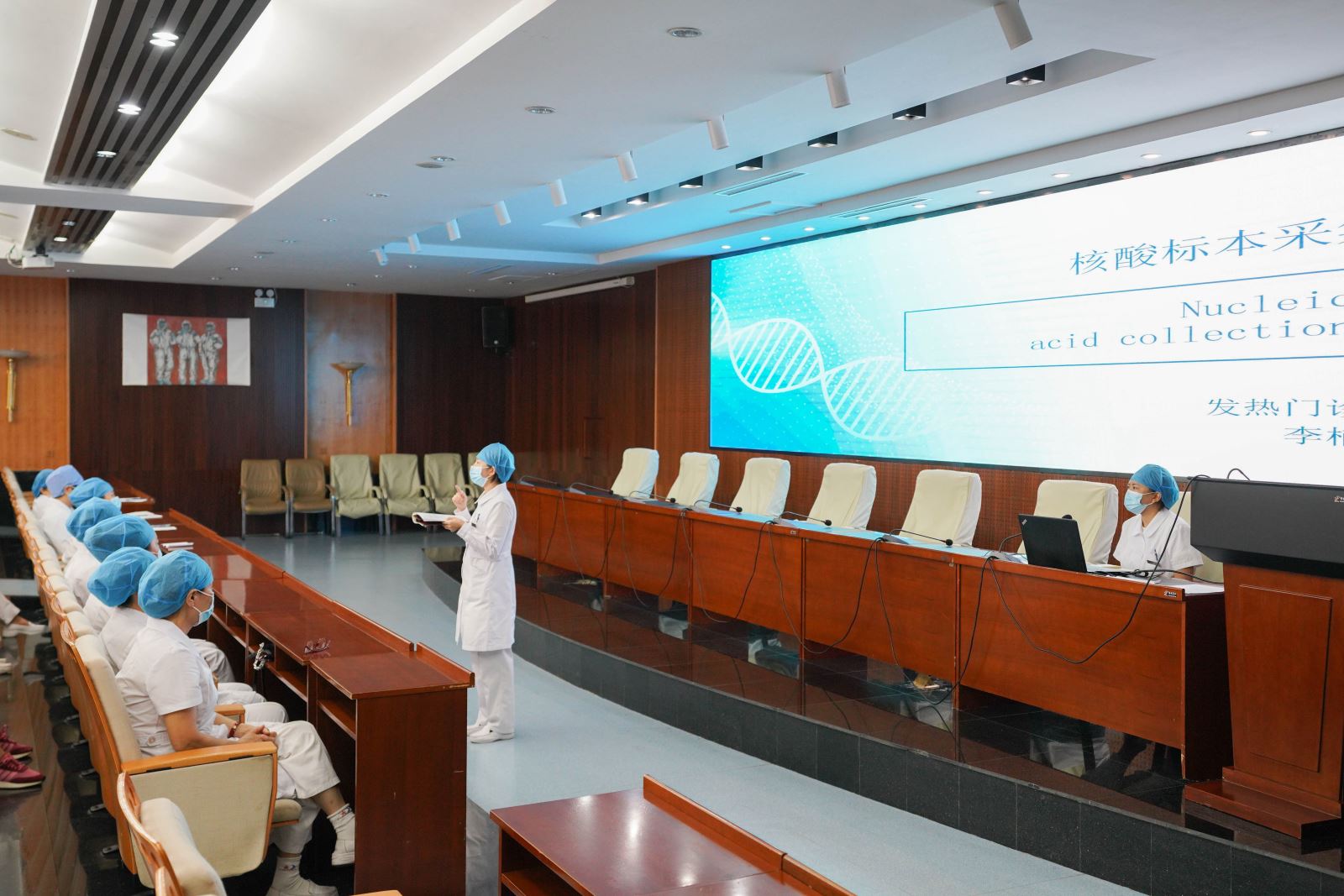 培训开始前,门诊部护士长王迪强调,核酸检测是筛检新冠肺炎的第一道防线,核酸检测样本采集是保证核酸检测结果是否准确的重要环节,对疫情防控有着重要意义。