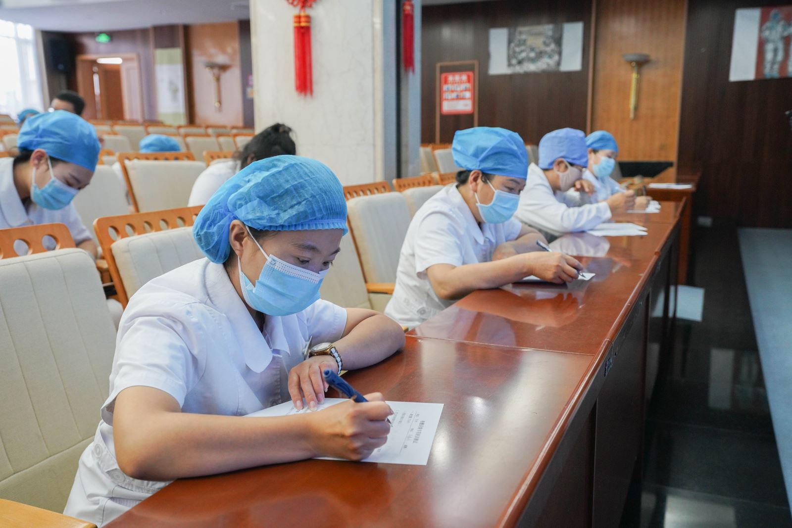 通过此次培训,使门诊护理人员更加全面的掌握了核酸采集和检测的知识技能,强化了个人防护和感染防控意识,为后续大量核酸检测采样工作提供了技术保障。我院坚持以党史精神为引领,牢记初心使命,持续严格贯彻落实各级关于疫情防控工作的各项规定要求,切实做好疫情防控常态化工作,为广大人民群众的生命健康筑牢安全防线。