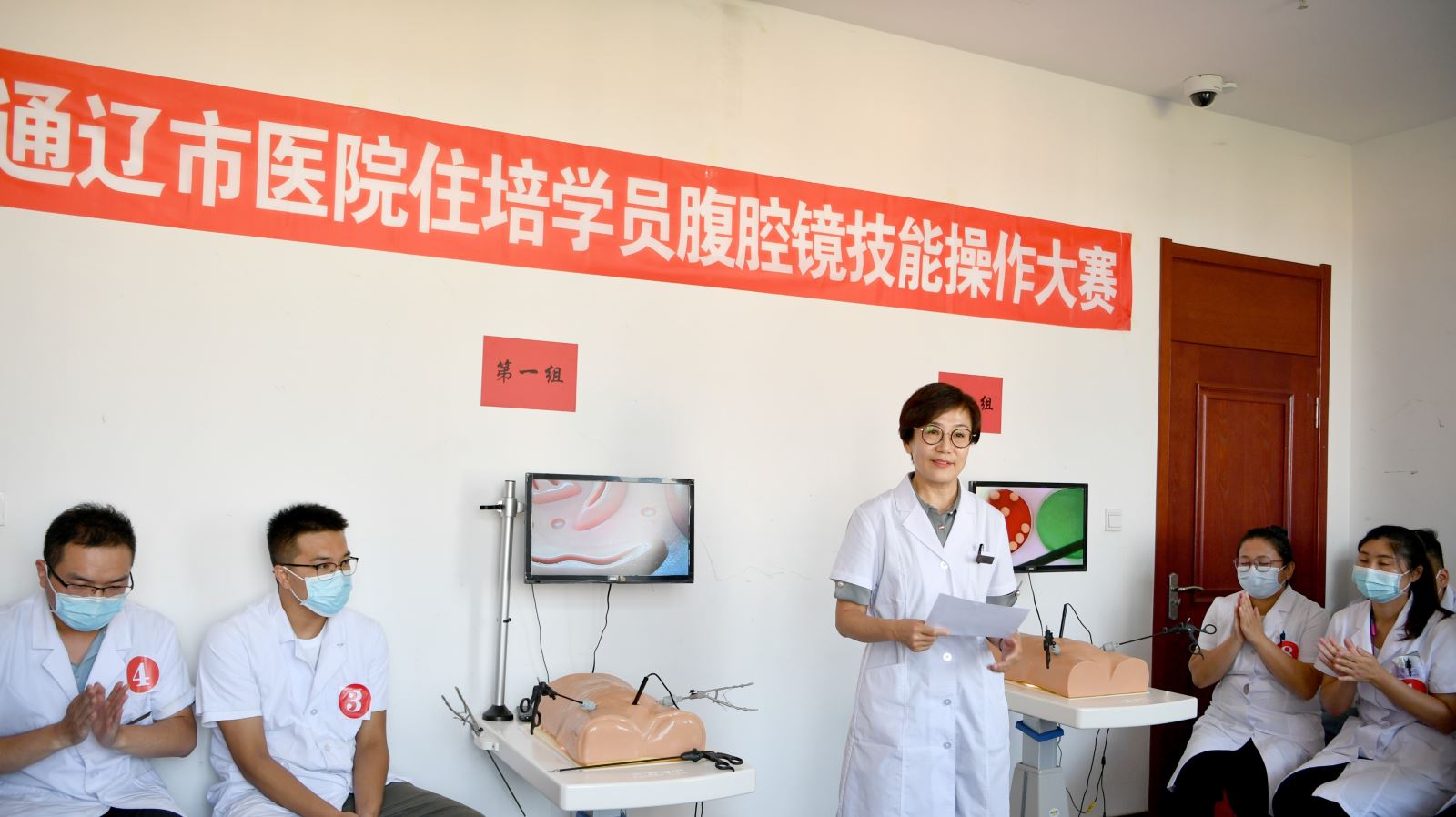 金秋收获季,竞技正当时。为提高我院住培学员的腔镜基本技能,调动学员学习腔镜技术的积极性,提升学员临床技能和综合素质,我院毕教办于8月30日下午举办了住培学员腹腔镜技能操作大赛。我院党委书记金洁,副院长杜艳秋,副院长张国友出席此次比赛,外科专业基地、妇产科专业基地领导小组全程参与。乳甲外科张立、胃肠外科喻祥旺、肝胆胰外科郭雅明、综合外科郭云峰担任评委。医务科、纪检监察室进行全程监督。来自外科、妇产科、骨科专业基地共近30名住培学员参加此次比赛。