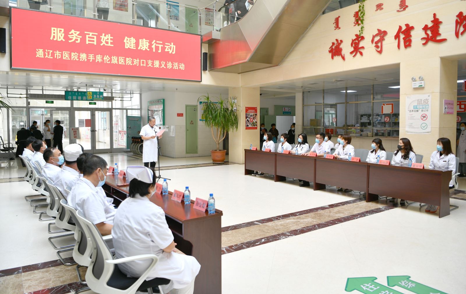 为做好2021年“服务百姓健康行动”全国大型义诊活动,方便群众在家门口看病就医,满足基层群众健康需求,提升公众防护意识和防护水平,我院结合党史学习教育,组织专家团队于9月15日到库伦旗医院开展我为群众办实事——通辽市医院携手库伦旗医院对口支援义诊活动。此次专家团队由我院副院长、胃肠外科副主任医师张国友带队,心血管内科主任医师谷晓颖,眼科主任医师许莉,妇产科主任医师李艳春,神经内科副主任医师王姝瑶、于靳洋,脑心健康管理师明旭颖、康宁,超声科副主任医师董丽娜,病理科副主任医师陈琪、副主任技师沈彦丽等14位专家参组成,活动涉及面向居民的义诊、面向医护的教学查房和临床授课等。