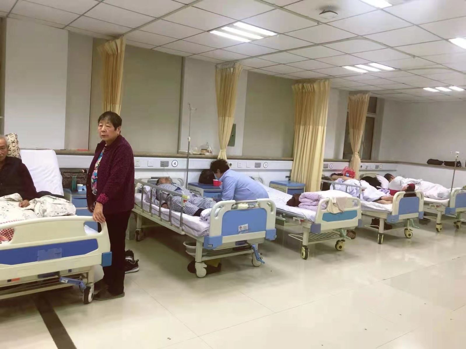 在医院的众多患者中,有这样一群特殊的病人——血液透析患者。他们中有很多人年纪偏大、行动不便,是跌倒的高危人群,而且患者接受完治疗后隔一天便要接受下一次治疗,恶劣的天气和交通情况给他们的日常治疗带领极大困扰。科室白刃主任看在眼里急在心上,如何更好解决患者的问题是当前最重要的事情。白刃主任紧急召集科室医护人员进行商讨,因患者及家属都经过严格的流行病学筛查,在遵守院感防控要求的前提下,决定将血透室留观病房无偿提供给家远和行动不便的患者及家属留宿,医院食堂也为患者提供了送餐服务,同时配有医护人员随时待命方便照顾。