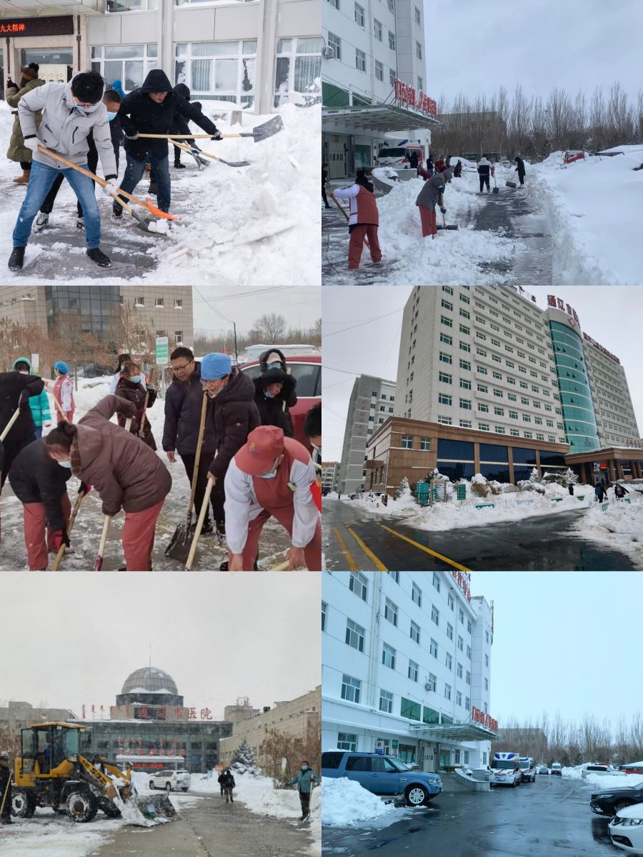 面对暴风雪给广大就诊患者带来的交通不便问题,医院提前谋划,于11月7日晚8时开始,10台铲雪车、清运车在东、西、北院区连续工作清理院内积雪。医院党委充分发挥战斗堡垒作用,第一时间发动医院广大党员干部职工组成志愿者队伍,划分片区,在各院区有序、有力开展破冰除雪工作。风雪虽大,却敌不过众志成城。在连续、多次人工与机械结合作业下,医院主要干道持续保持畅通,为患者开辟了一条条安全绿色通道。“你们行动真是太快了,路上没有积雪,我们走路方便多啦!”医院的铲雪大行动引来过往患者们的纷纷点赞。
