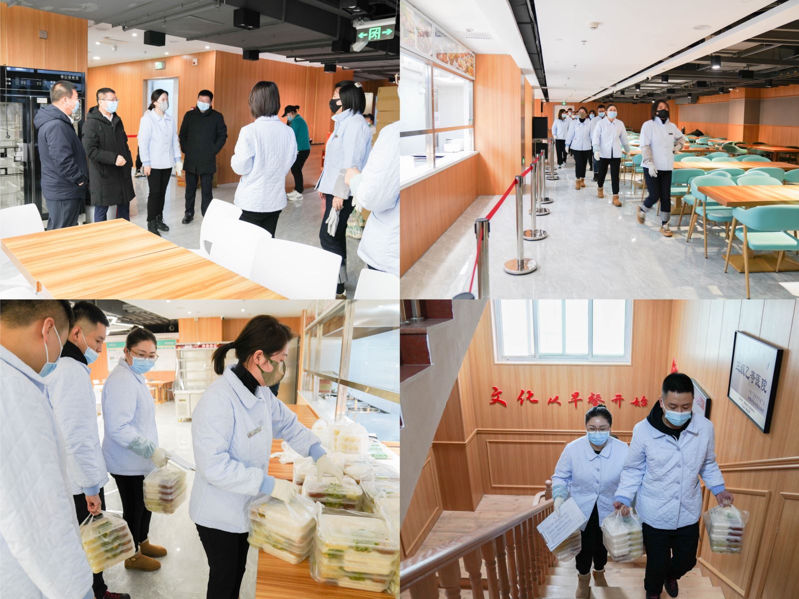 在病区,由于医院实行闭环管理,患者和陪护人员非必要不外出,11月29日开始,在院党委统一部署下,我院体检中心工作人员组成志愿者服务队,为住院患者和陪护人员提供送餐服务,缓解了食堂工作人员人手不足,患者和陪护人员就餐不及时的问题,让患者安心住院,得到了广大患者和陪护人员的一致好评。