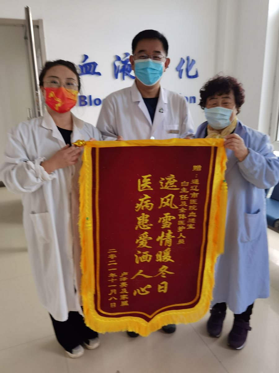 前段时间通辽市的极端暴雪天气,积雪深度达到59厘米,打破了1951年来的纪录。这场难忘的大暴雪给血液透析患者带来了极大的不便,他们中有很多人年纪偏大、行动不便,是跌倒的高危人群,而且患者接受完治疗后隔一天便要接受下一次治疗,恶劣的天气和交通情况给他们的日常治疗带领极大困扰。白刃主任带领透析室的医护工作者们,想患者之所想,急患者之所急,将血透室留观病房无偿提供给行动不便的患者及家属留宿,并联合医院食堂为患者提供送餐服务,解决了20多位患者的就医和食宿问题。