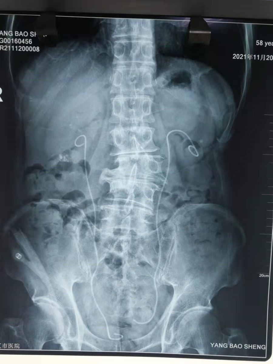 患者杨某,男,58岁,入院40天前经彩超检查发现巨大右肾铸形结石、左肾多发结石。曾前往市内、外多家医院就诊,因结石过于巨大和复杂,均未接诊,此次慕名来我院泌尿外科求治。经完善检查,充分术前准备,先期处理了肾积水较为严重的左肾多发结石,两周后为右肾实施手术,手术历时2个小时十分钟,顺利取出粉末化的结石,复查无明显结石残留。目前,患者在泌尿外科医护人员的精心呵护下已经痊愈出院。