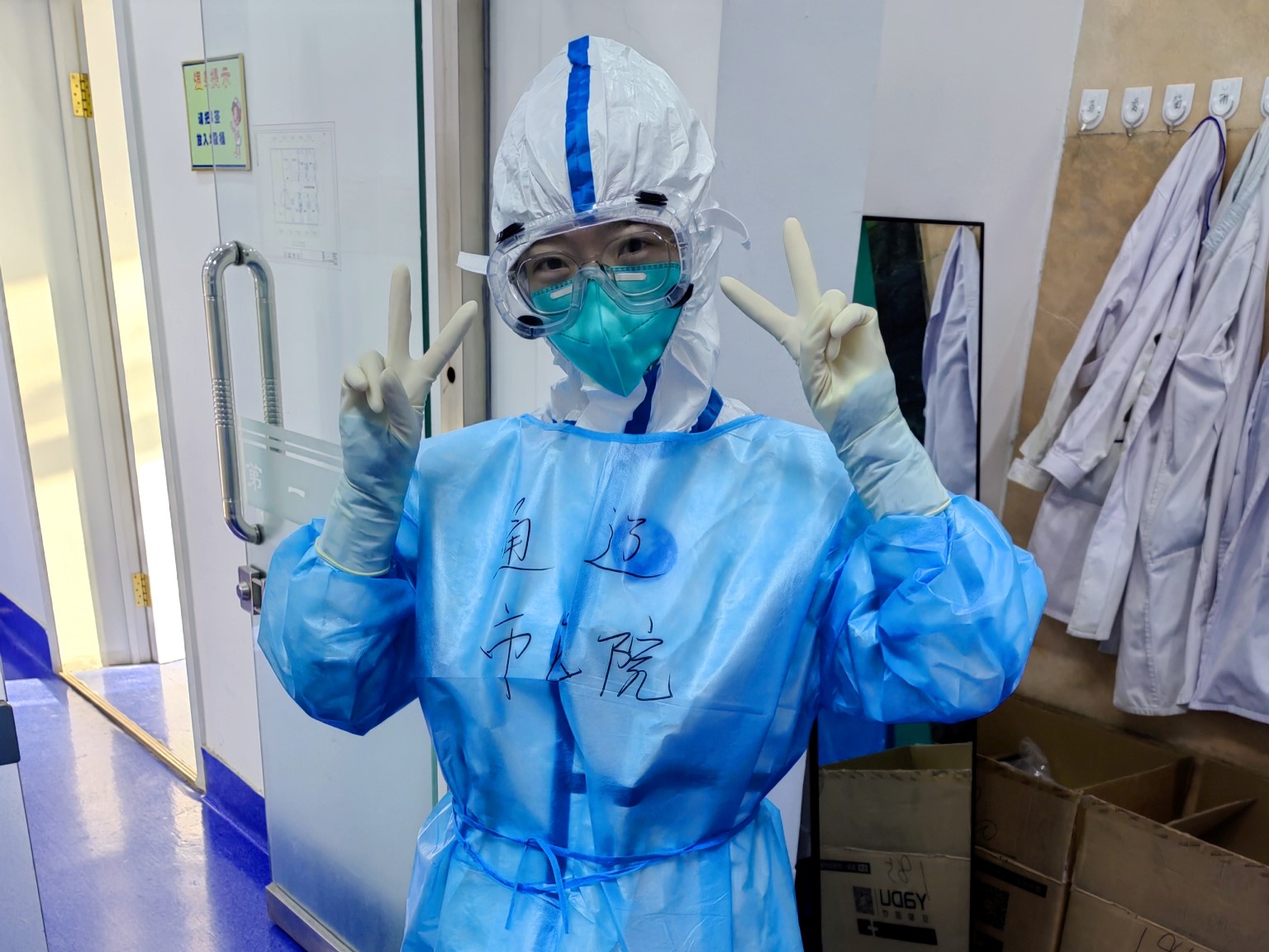 来到实验室,我们快速穿好防护装备,做好准备工作。今天依然是3人在二区负责标本加样、提取,1人在三区负责扩增、垃圾处理。每天都处理上千份的标本,穿上防护服在安全柜前一坐就是几个小时。虽然我们不断重复着相同的操作,但是我们知道当前的疫情形势依然严峻复杂,时刻都不能放松警惕,务必将工作保质保量完成,直到结果报告。今天实测标本1091份,当结果出来没有一个阳性的时候,我们心里也是特别的欣慰。直到下午完成全部工作任务,并与下一组做好交接班工作后,我们才安心返回宾馆休息。