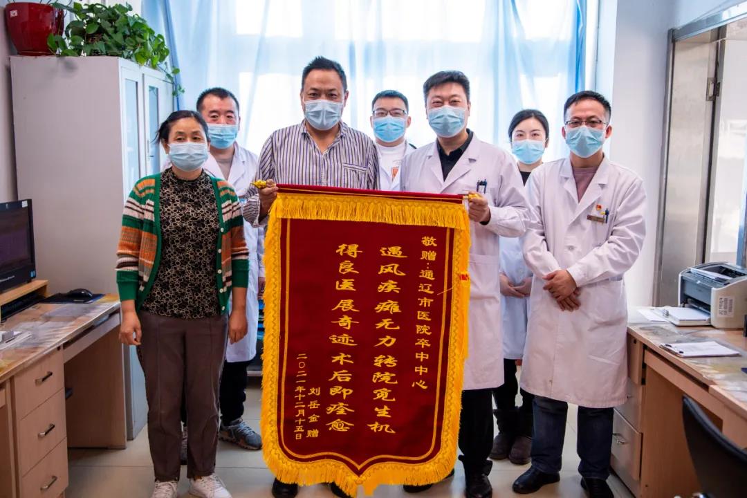 12月6日上午刘某在家休息,家属发现其睡眠增多,并且逐渐出现右侧肢体无力,上肢不能拿东西,下肢不能站立行走等症状,家人紧急将患者送入附近的一家医院进行救治,经过头CT、头MRI检查后诊断“急性脑梗死、左侧大脑中动脉闭塞”,该医院立即给予患者尿激酶静脉溶栓治疗,但溶栓后患者右侧肢体无力症状仍未得到改善。患者家属随即联系了我院,我院卒中中心分管副院长杜艳秋、介入组组长徐鹏评估后,其NIHSS评分16分考虑有急诊手术指征,建议立即行“颅内动脉取栓术”,时间就是大脑,时间就是生命,患者到达我院后,卒中中心迅速启动了绿色通道,以最快的速度完成术前准备,一场挽救生命的战争正悄无声息地展开,从入院到穿刺成功只用了10分钟,经过30分钟的取栓后,终于可见血流清晰通过。至此,生命的通道被重新开通,患者在手术台上,不但恢复了意识,完全瘫痪的右侧上下肢也能抬起了,从死神手中抢回一条生命,避免发生残疾,挽救了一个家庭!患者家属十分感激,特意为我院医务人员送来锦旗,深情致谢。