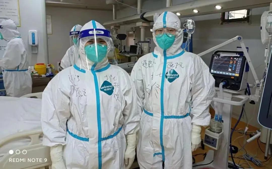 每天的工作忙碌、充实。患者的状态也随时可能发生变化。今天,医生让我们为患者更换卧位,我们五、六个人合力将患者调整为仰卧位,可改变卧位后患者的血氧下降,随后我们立即为患者抽取动脉血,呼吸治疗师更改呼吸机参数,可是患者的血氧还是不高,我们紧急配合医生对患者进行治疗,并将患者调整回原来的俯卧位,虽然我们心里很急,但都是有着丰富重症护理经验的护士,动作沉着,思维冷静,配合默契,一番忙碌过后,患者病情得到控制,刚才紧绷的心也稍微放松下来。几天工作下来,看着逐渐好转的患者们,我们的工作干劲十足,也相信在我们齐心协力的共同努力下,一定会在这场战疫中赢得最后的胜利!