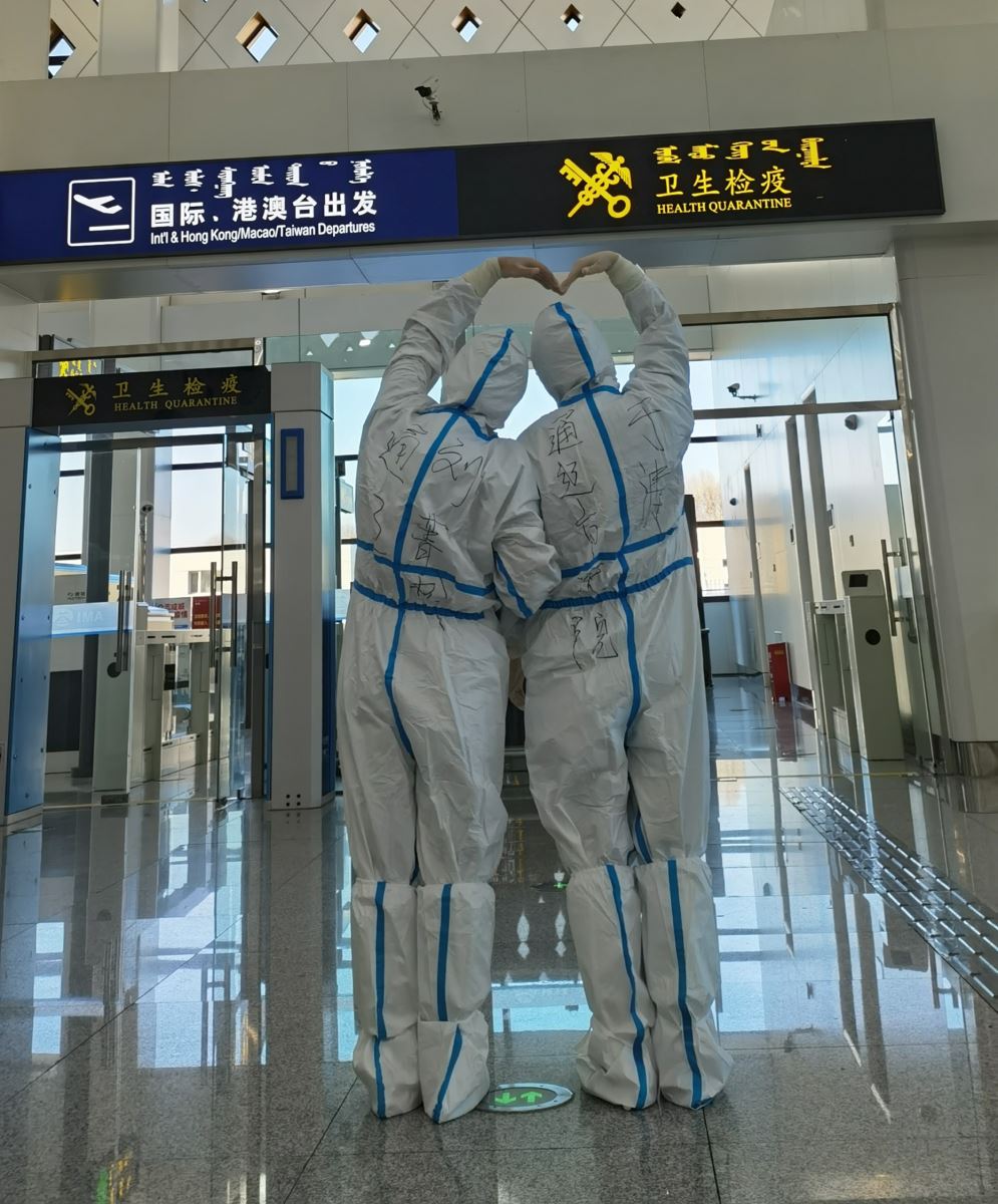 支援海关就是坚守国门的战役!我们医疗防控队于12月15日到达呼和浩特,自治区卫健委常青副主任及应急办刘军强为我们举行了简单的欢迎仪式之后,即投入为期两天的严格理论培训及实战演练,穿脱防护服考核,熟悉机场防控疫情的流程及操作规范,我们认真学习,都顺利通过了考核。