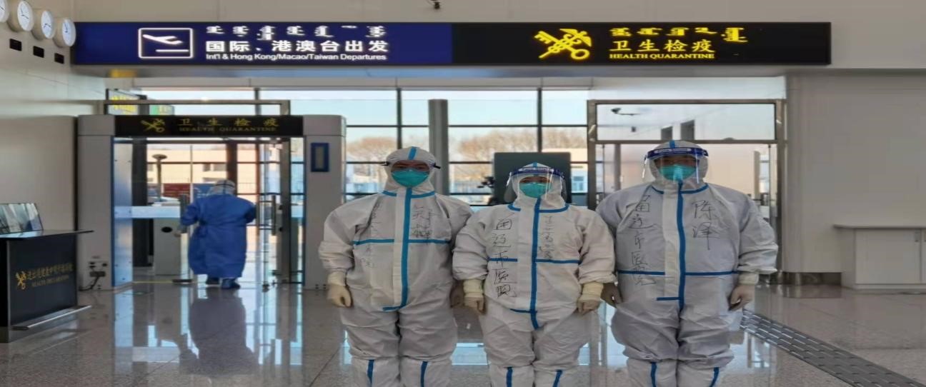 面对海外疫情不断扩散,新变异毒株输入风险骤增的形势,身为一名共产党员,一名医护工作者,自愿请缨奔赴抗疫一线。12月15日,肩负着院领导班子的嘱托,成为守护国门逆行者中的一员,奔赴呼和浩特白塔机场海关进行新冠疫情排查工作。