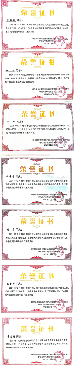 2021年12月9日,我院七名护理人员带着全力防控疫情,救治患者的同时把自身防护措施做得更到位,确保实现打胜仗,零感染的目标,来到了呼伦贝尔市新冠肺炎集中救治定点医院——海拉尔区人民医院,进行支援工作。近20个日日夜夜的坚守,近500小时的一线奋斗,大家在零下30多度的艰苦环境下,克服困难、铁肩担重任,我们终于取得了此次抗击疫情的全胜——海拉尔区人民医院隔离病房内患者全部出院,在该院救治的新冠确诊病例全部清零。