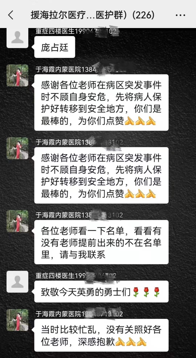 我最可亲可爱的战友们,以前,我们是同事。这一次,我想称你们一声战友。说句真心话,此次支援呼伦贝尔,我内心一直都很平静,没有不安与害怕。很大原因在于我们这支队伍实力雄厚、所向无敌。我们在一个战壕里,从来都没有感觉陌生,而是有苦、有乐、有艰辛,在这个战壕里我们群策群力,我看到了大家对这份工作的热爱,对抗击疫情的这份激情,对护理工作的无私奉献,对病人无微不至地照顾,想起那一幕幕工作场景,印在我的脑海里,令我非常感动。值得骄傲的是,我们没有愧对使命和责任,战友们共同的努力使呼伦贝尔市新冠肺炎定点医院重症病区新冠确诊病例全部清零,获得了“三个零”的“满分”好成绩:医护人员零感染,危重病人零死亡,出院病人零回头。感谢队友们这段时间对我工作的鼎力支持,我们受益匪浅,收获了友情,收获了知识,收获了团队合作的精髓,这是非常难得的一段经历、历练和洗礼,成为这个团队一份子来到呼伦贝尔抗疫前线是我此生重要的一课。