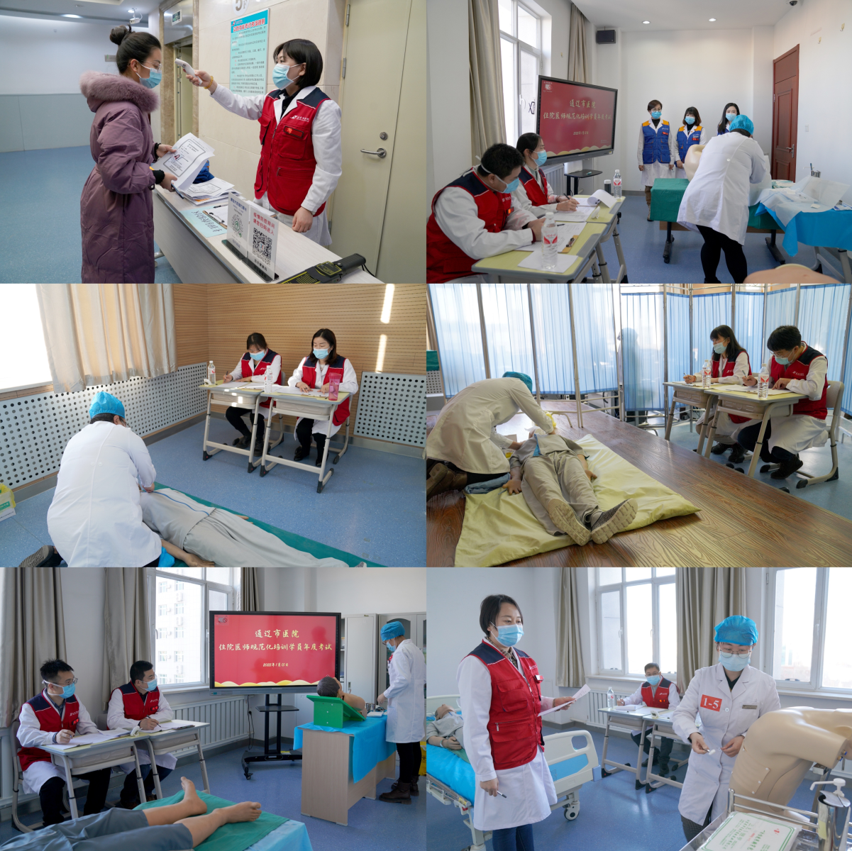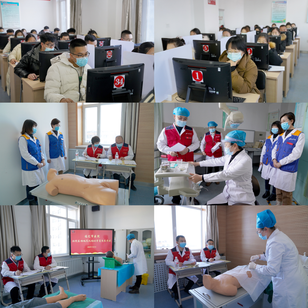 本次考核由医院毕业后医学教育办公室安排部署。在常态化疫情防控的背景下,制定了完整的考核流程及应急预案,并对考场环境、网络压力、监控视频、考务组织及考核流程等方面进行了测试工作,要求进入考核区域人员均须出示健康码,测量体温,做好考场消杀工作。上午理论考试由市卫健委及我院联动实施,自治区统一出题,全面科学考核学员;下午技能考核方式采用OSCE考站形式,考核内容为基本技能操作、辅助检查结果判读等。各考站之间衔接流畅,考核路线无交叉。考核期间,考官严格遵守考官守则,严谨认真执考,考生主动严守考试纪律,聚精会神作答,考场秩序良好,考核工作安全有序进行,未出现违纪违规现象,圆满完成了年度考核工作。