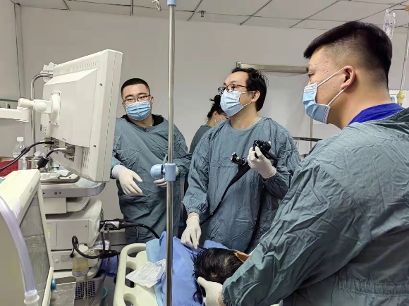 近日,我院消化内镜中心西区胃镜室成功为一位食道静脉曲张破裂出血的患者实施胃镜下食道静脉曲张套扎术,填补了我院胃镜下微创治疗的一项空白。