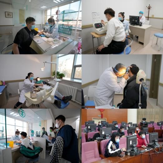 会议过后,体检工作正式开始,各相关科室医务人员按时到岗、各司其职,认真地为每一位征兵人员进行内科、外科、眼科、口腔、胸片、心电图、超声、化验等项目检查,整个体检过程井然有序。通辽军分区大校政治委员崔景文、动员处处长刘波来现场指导检查。