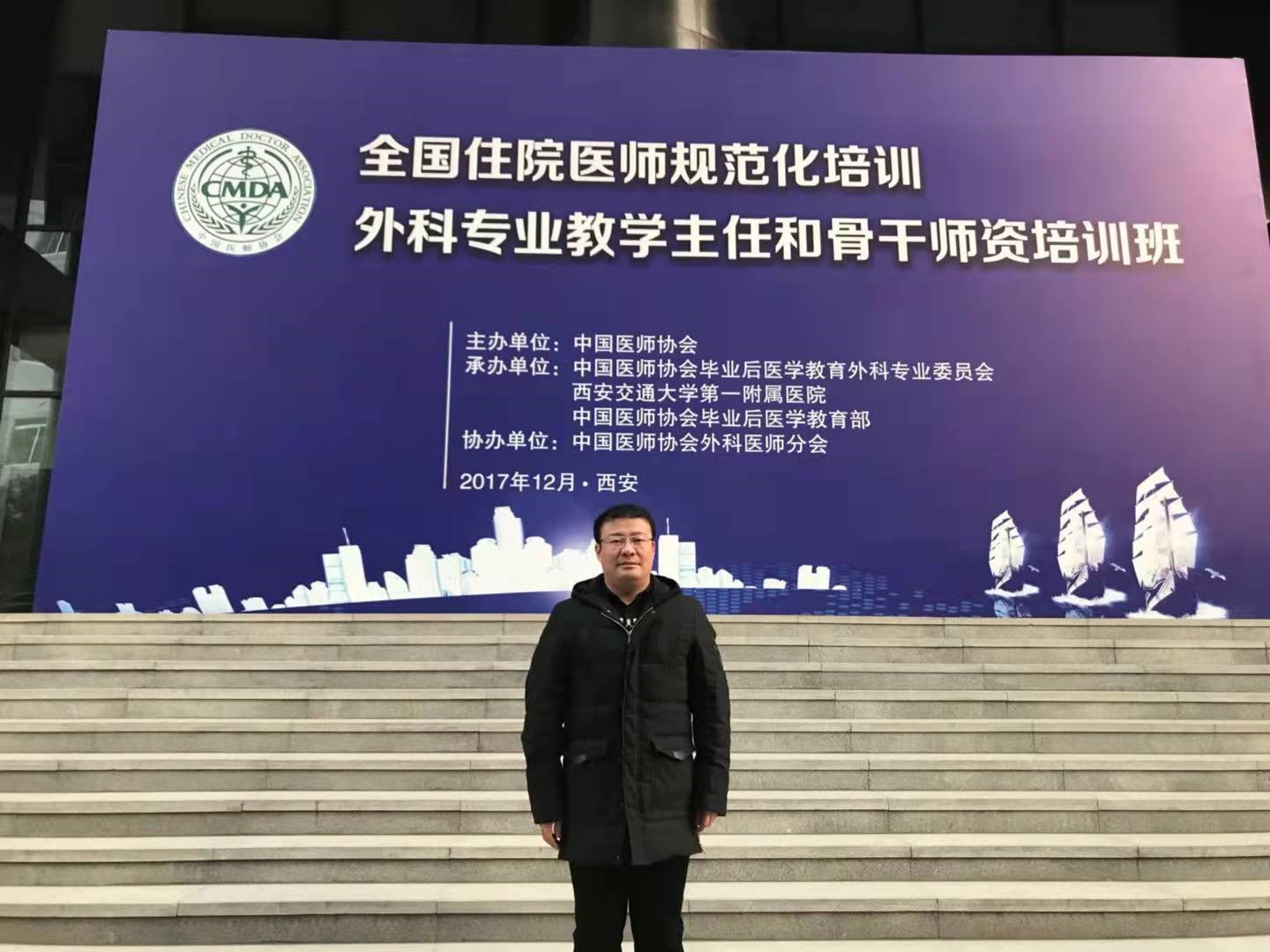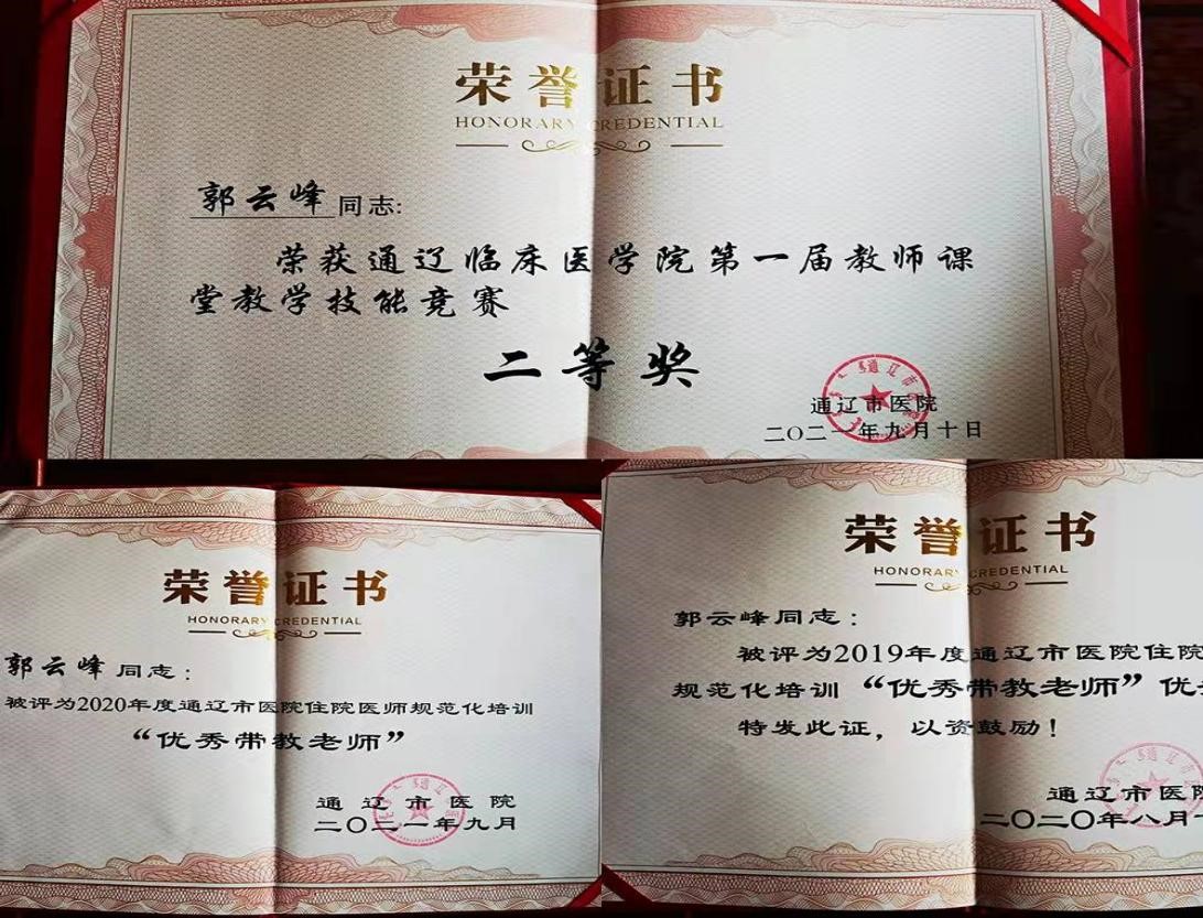 教学相长,医教结合。工作之余,他配合参与住院医师规范化培训工作,担任内蒙古医科大学临床医学院外科教研室秘书,积极完善教研室建设。多次参加国家级住院医师规范化培训班。带教全科住培医师、临床住陪医师,言传身教,以身作则,自治区专家组检查时作教学查房带教展示,并获得专家的认可。