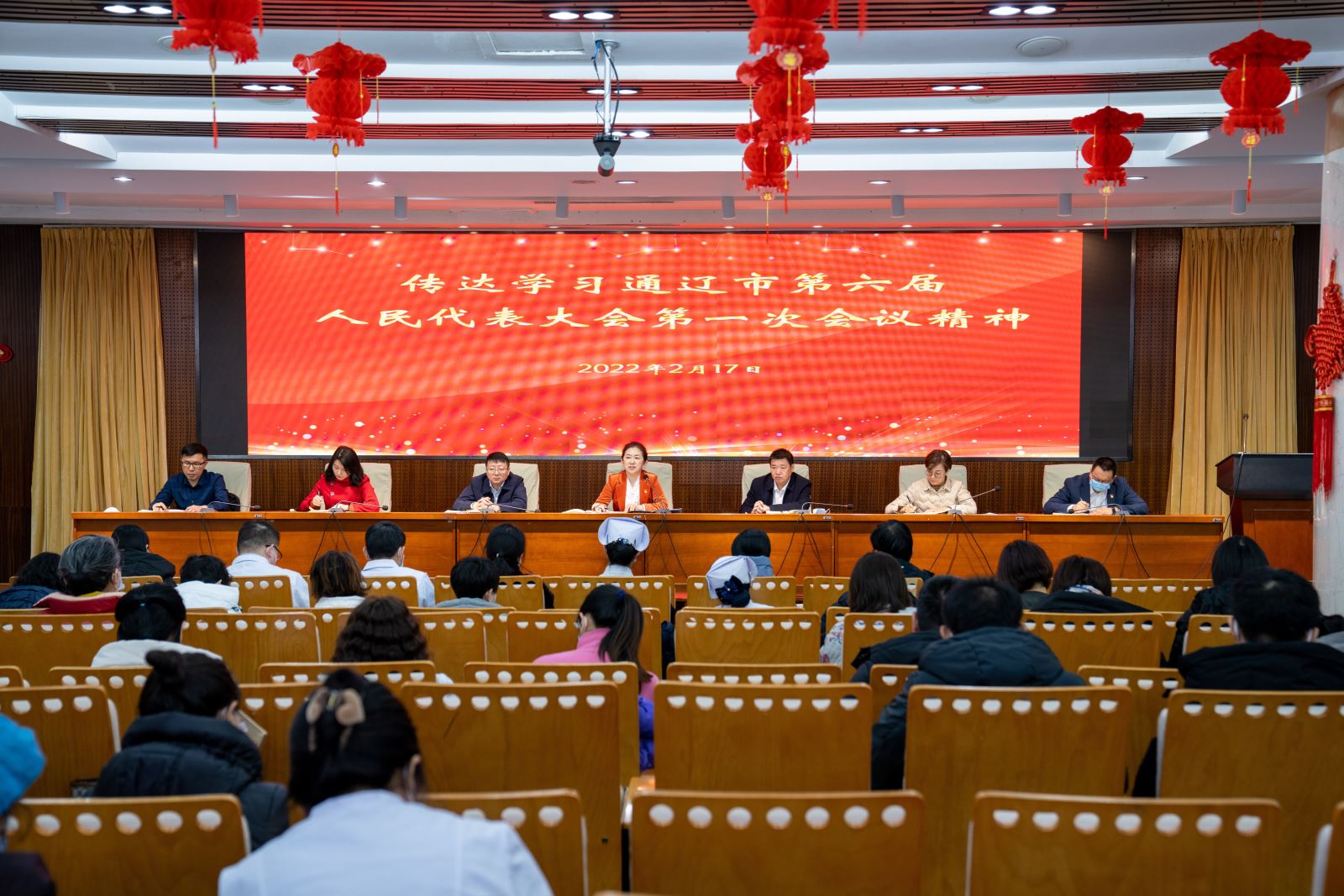 2月17日下午,我院在老干部病房会议室召开传达学习通辽市“两会”精神会议。通辽市第六届人大常委会委员、我院党委书记金洁同志,通辽市第六届政协常委会委员、副院长杜艳秋同志分别对通辽市第六届人民代表大会第一次会议精神、政协通辽市第六届委员会第一次会议精神作了全面传达。全体领导班子出席会议,全院环节干部、党支部书记、支部委员参加了会议。