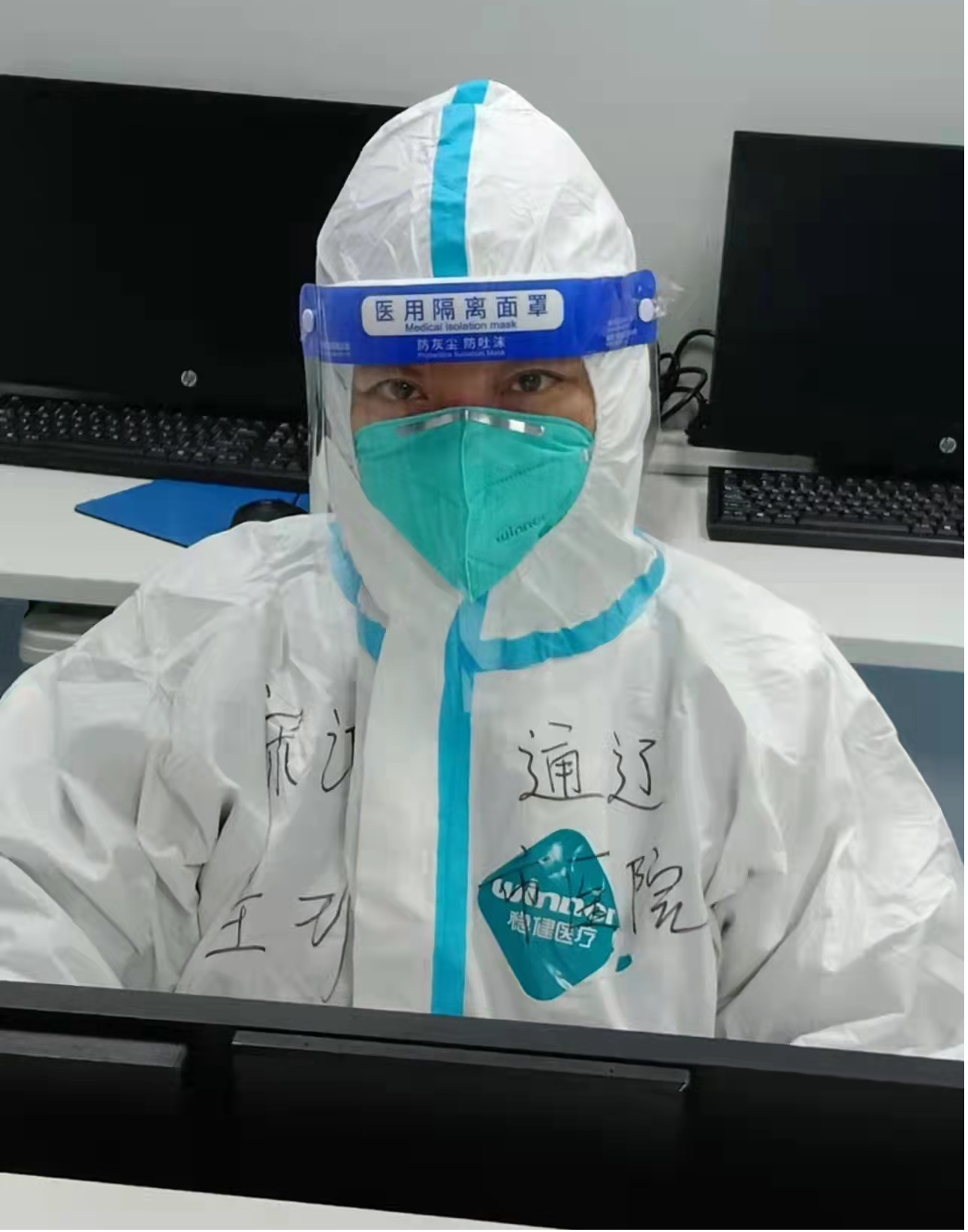 贾莹莹——2月24日被紧急任命为通辽市医院援呼重症医疗队队长,出征首府,倍感荣幸。25日上午,我们被通知接管第四医院专门救治重症患者的负压病房二楼,开始了忙碌充实的工作。接下来的每一天,我们密切配合,工作按照每4小时一个班次,24小时6个班次,每天都能看到我院20名护理队员忙碌的身影。我们带着必胜的信念去守护和帮助每一位病患,也相信明天会更好!