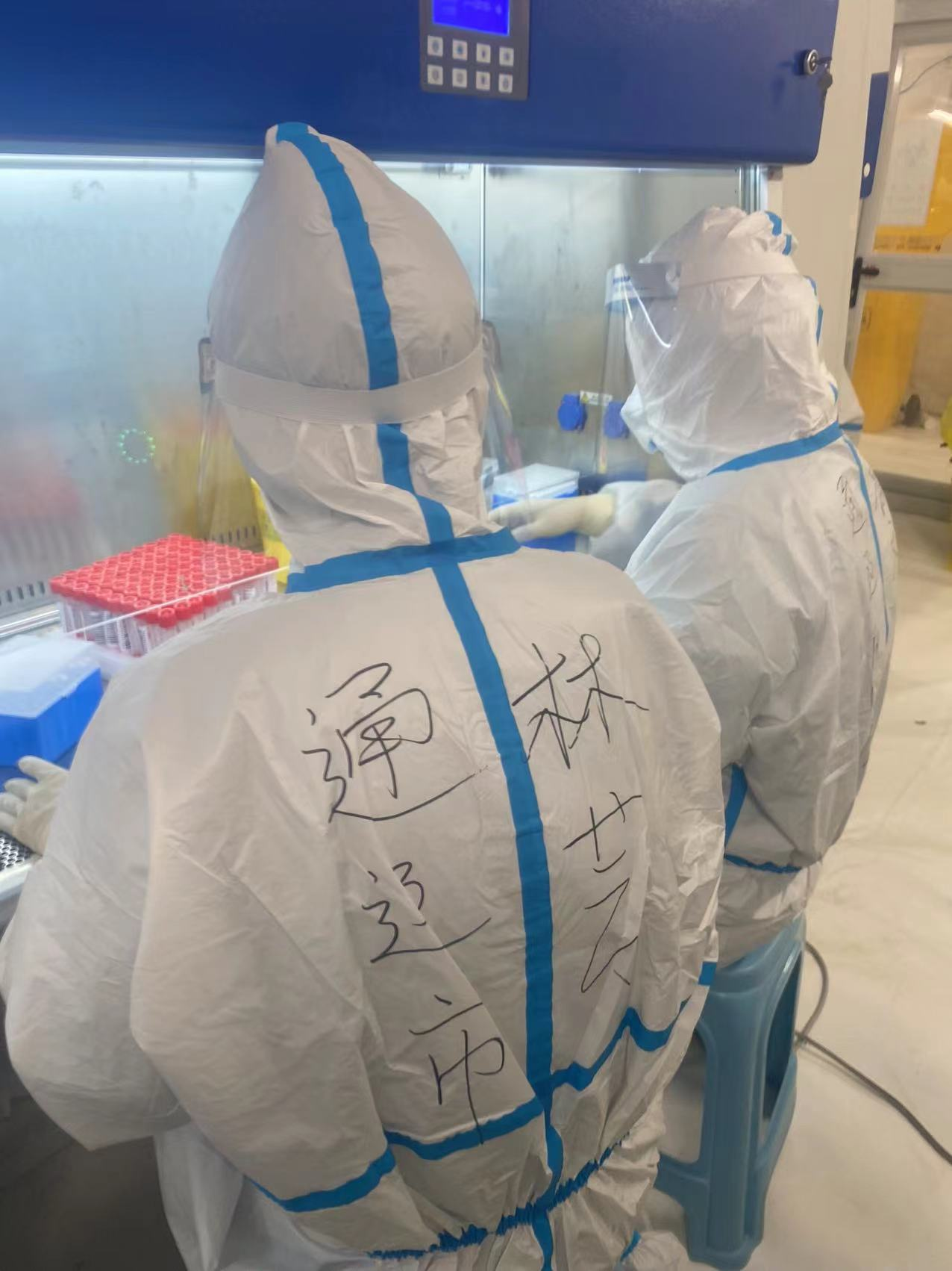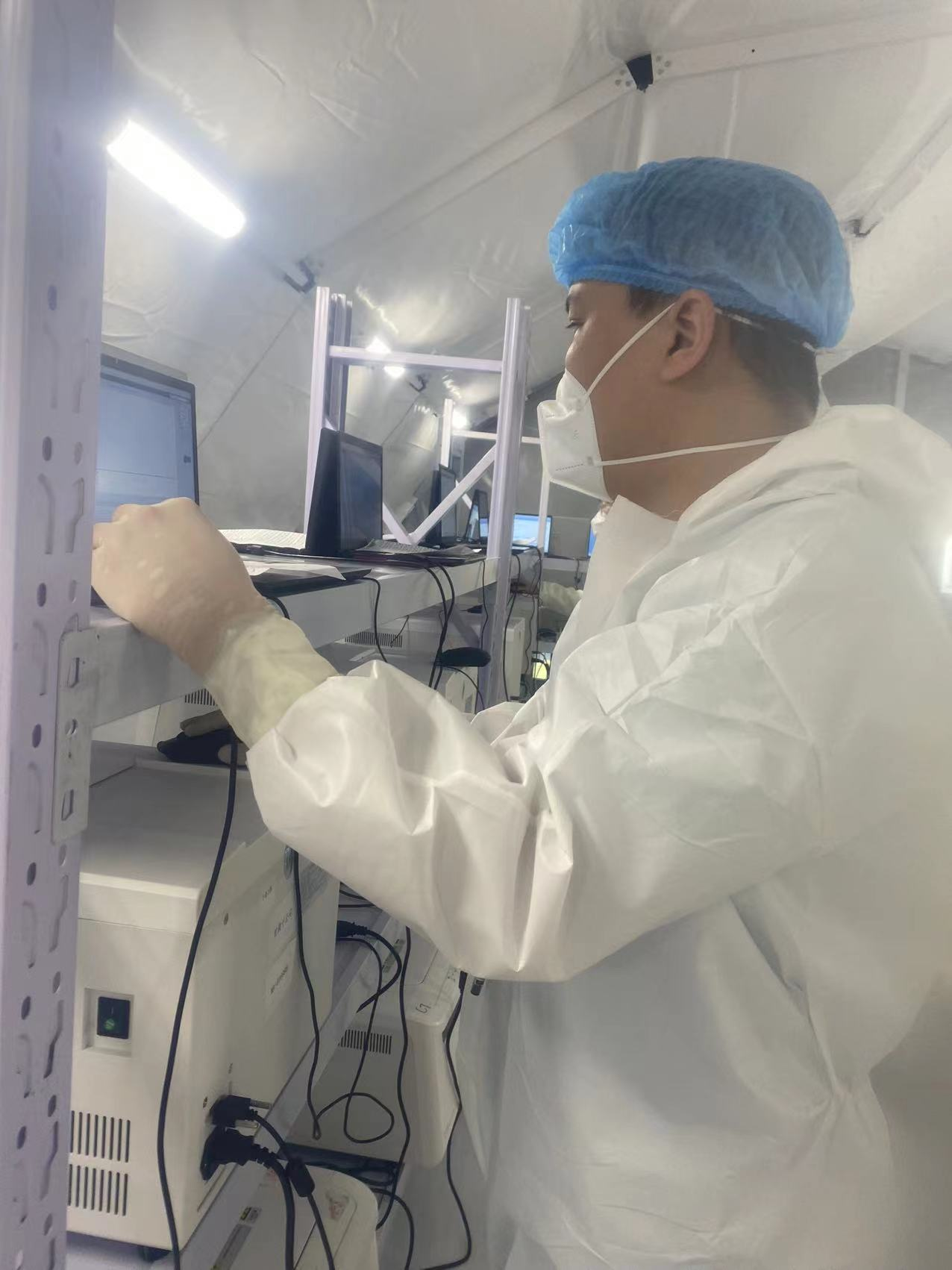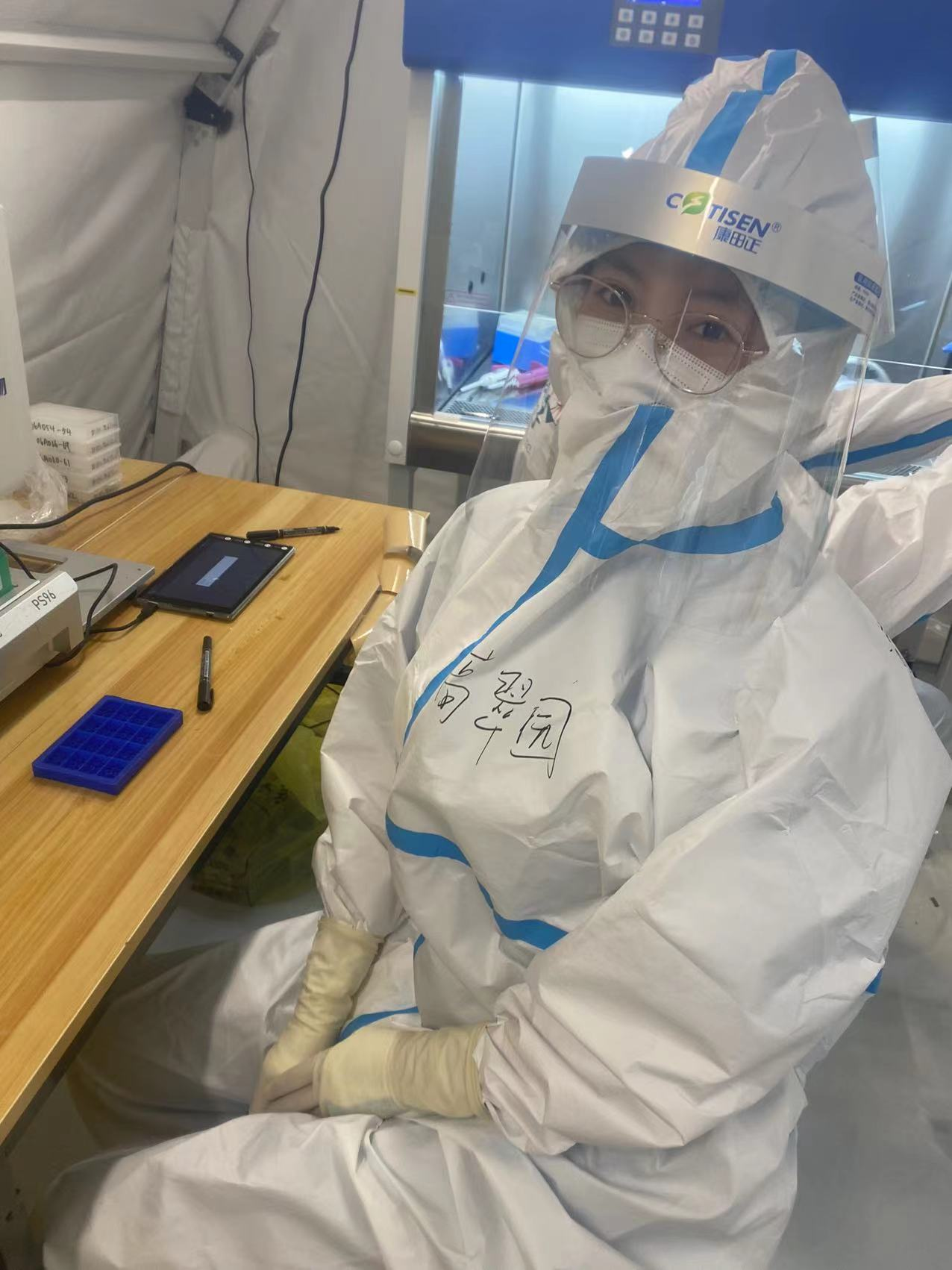 “到达呼市的第一天起就24小时待命,随时做好了进入实验室的准备。我临危受命担任了扩增区组长一职,这个区域可以说是“战斗的最后一座堡垒”,从21日早七点到22日早八点,中间只短暂的休息了三个小时,期间不敢喝水,不敢多吃饭,在此之前从未体验过12个小时以上不上厕所是什么感受,身为一名党员,深知自己任务的艰巨,虽然陪伴我的是一条条曲线,一组组数字,也从未让我觉得孤独……能够用自己的一技之长为首府人民奉献出自己的绵薄之力,我感到骄傲。”