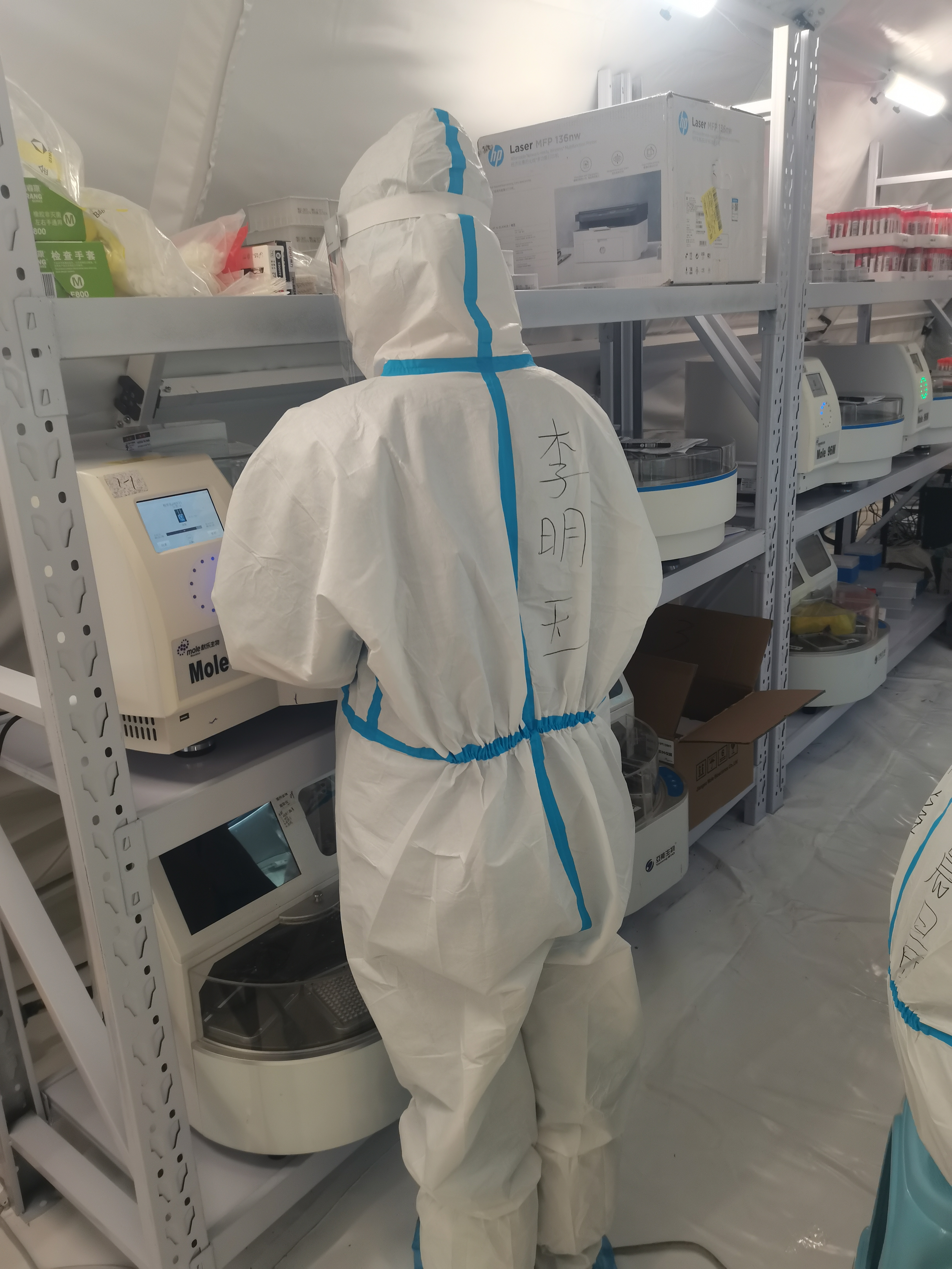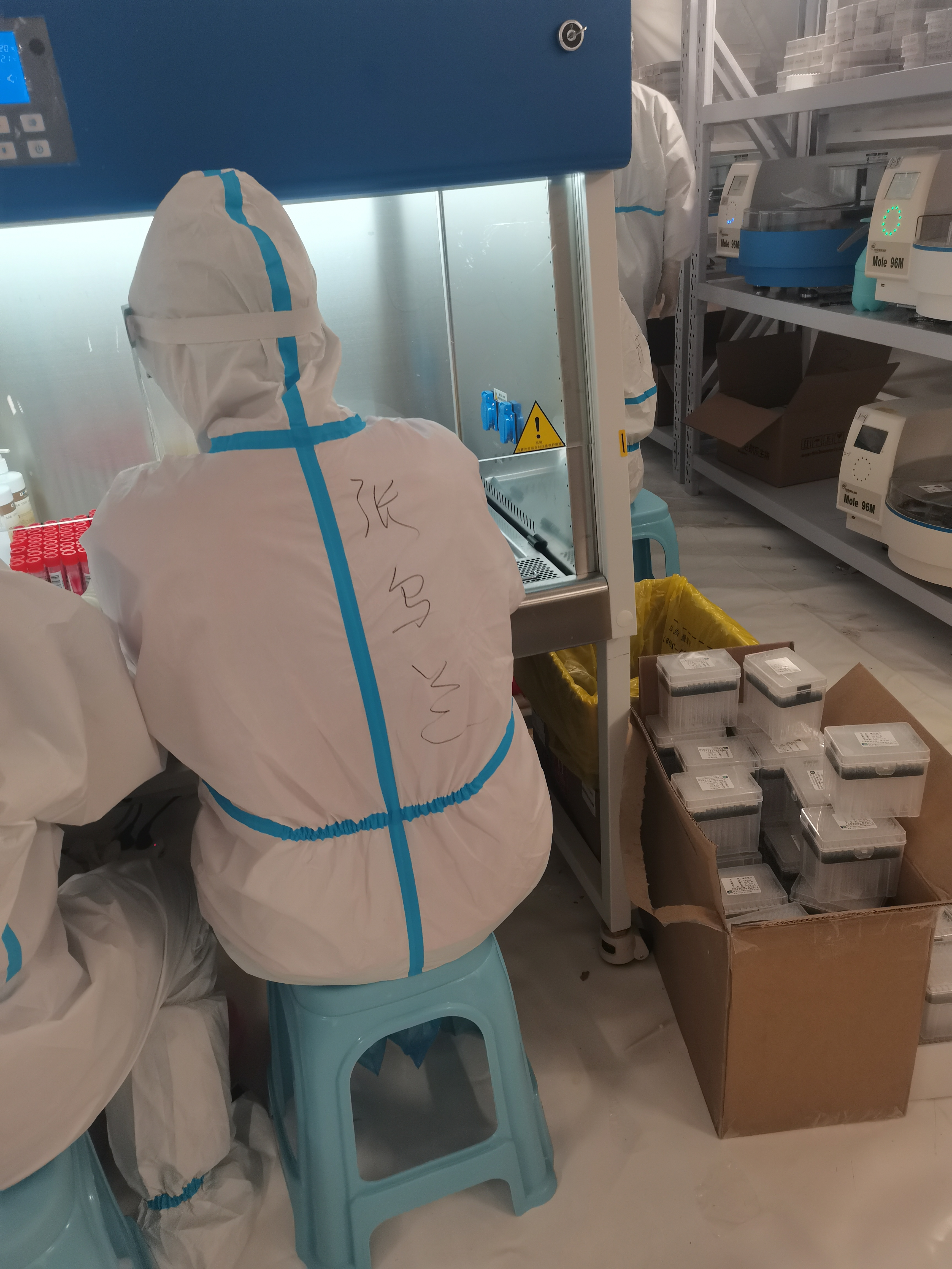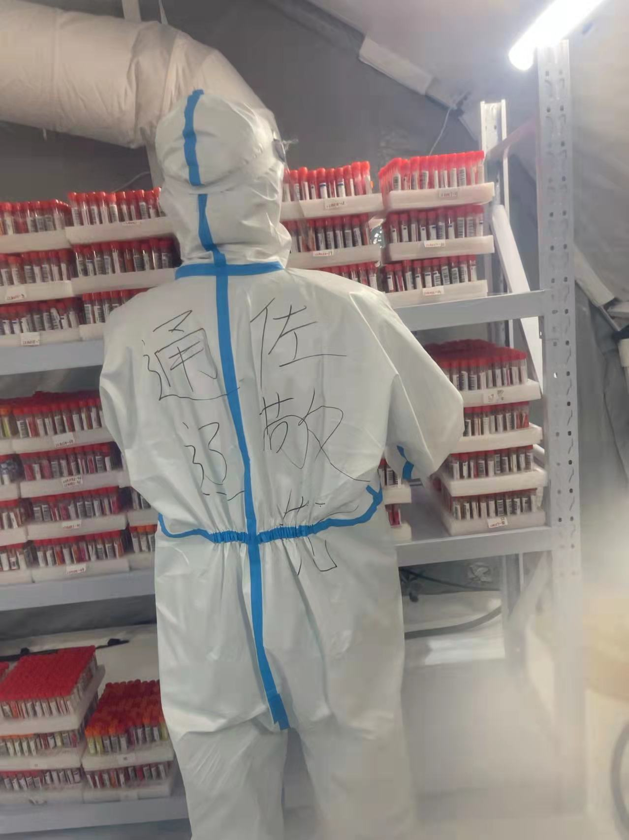 “到达呼市的第一天起就24小时待命,随时做好了进入实验室的准备。我临危受命担任了扩增区组长一职,这个区域可以说是“战斗的最后一座堡垒”,从21日早七点到22日早八点,中间只短暂的休息了三个小时,期间不敢喝水,不敢多吃饭,在此之前从未体验过12个小时以上不上厕所是什么感受,身为一名党员,深知自己任务的艰巨,虽然陪伴我的是一条条曲线,一组组数字,也从未让我觉得孤独……能够用自己的一技之长为首府人民奉献出自己的绵薄之力,我感到骄傲。”