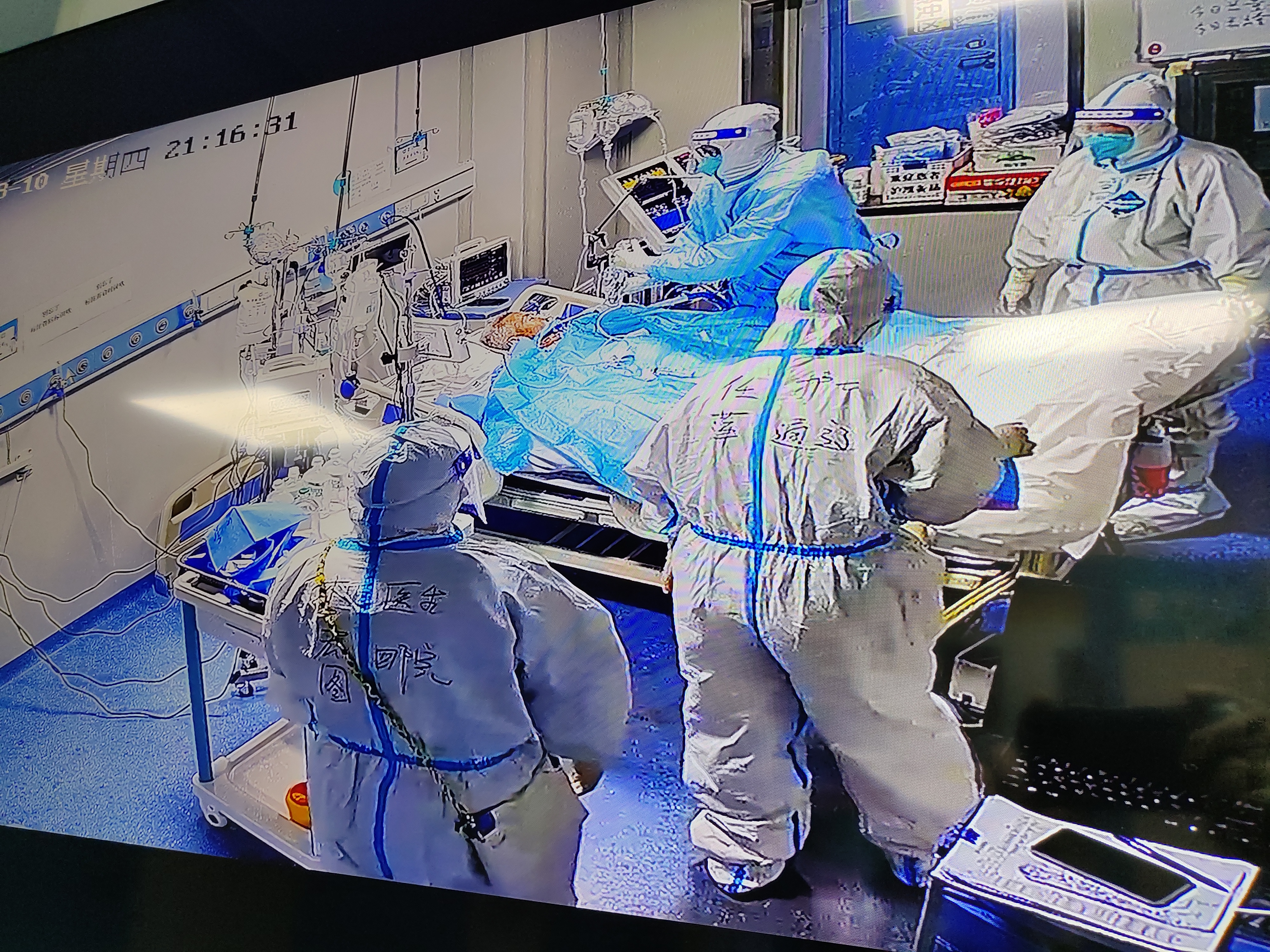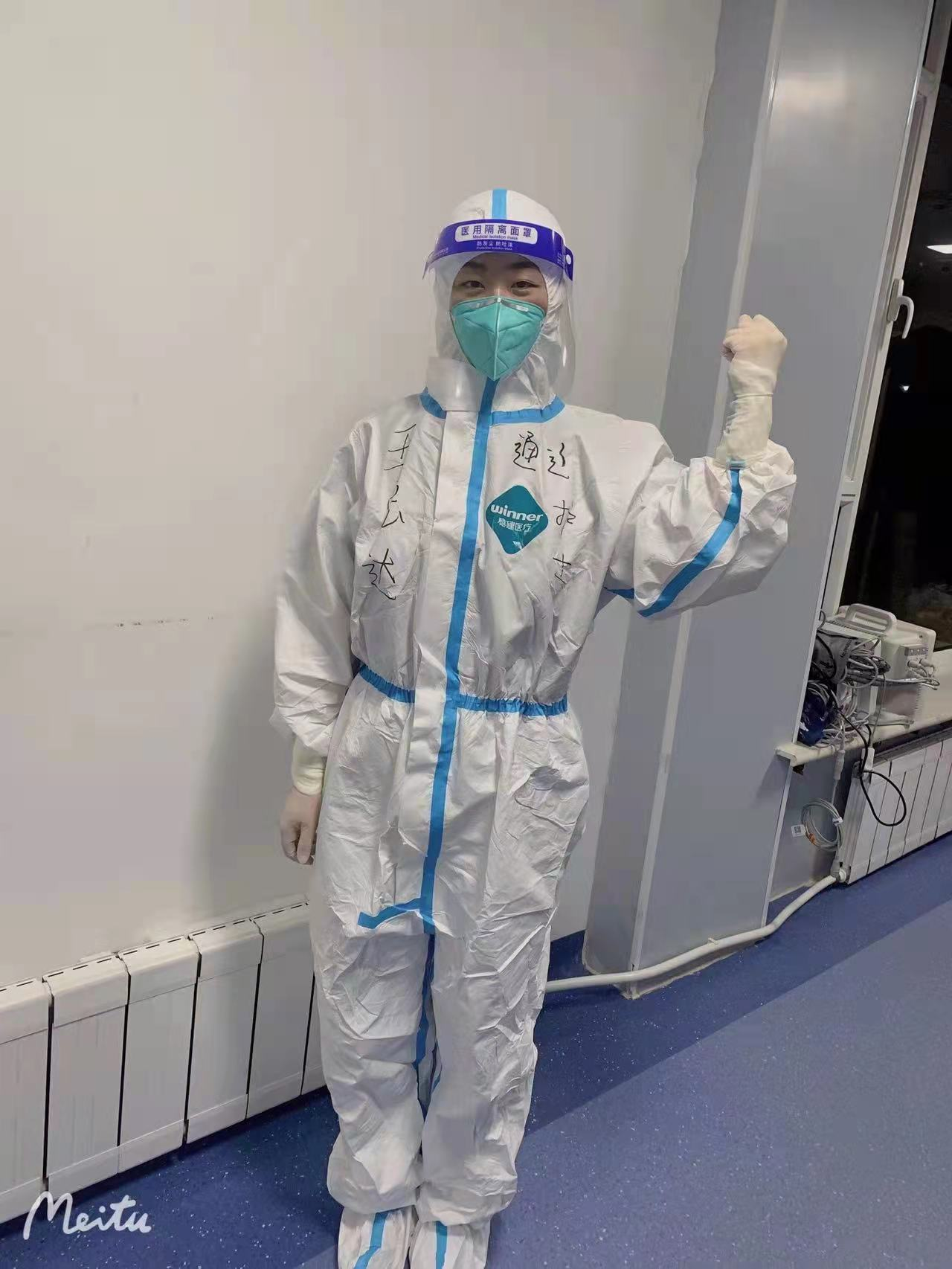 任萍——随着疫情得到了控制,很多患者也有所好转。大部分都转至了康复区。我们负压二病区的队员们,全部转至负压一病区继续工作。负压一病区多数都是重患。气管插管及ECMO治疗病人。患者的状态随时都可能发生变化,我们时刻提高警惕,密切观察患者的病情变化。整个团队小组配合默契,每天看着有好转的患者我们工作起来干劲十足。相信疫情终会散去,迎来春暖花开。