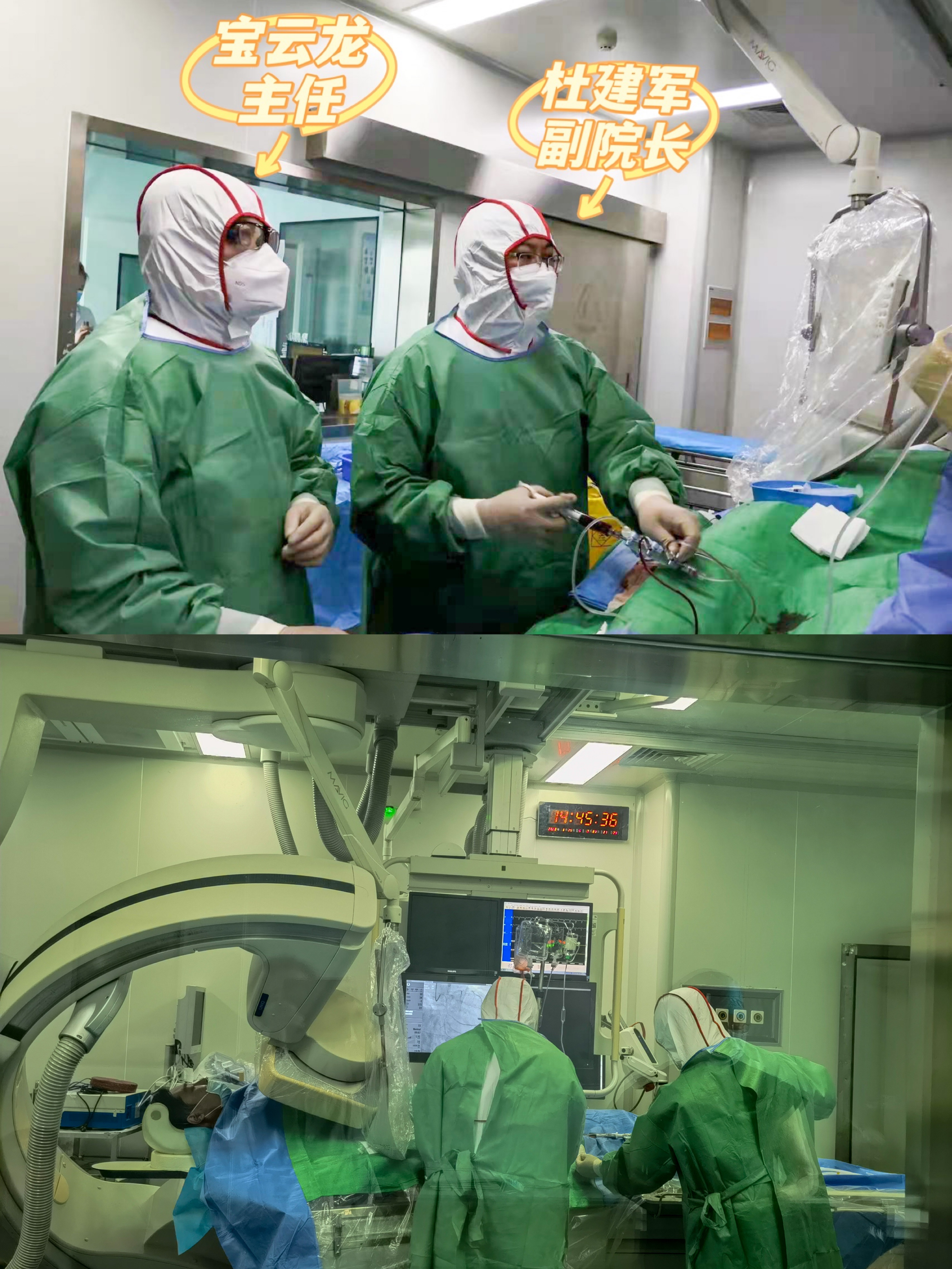 患者,男性,38岁,来自我市旗县疫区,急性胸痛发作,由兄弟医院通过我市胸痛联盟联合救治体系,第一时间转运至我院胸痛中心。由于患者来自疫区,我院立即启动疫区患者应急救治预案,经病情评估后诊断为急性心肌梗死,即刻开启绿色通道,通过闭环管理,将患者送至负压导管室进行手术治疗,我院杜建军副院长,心内一科宝云龙主任亲自操刀。
