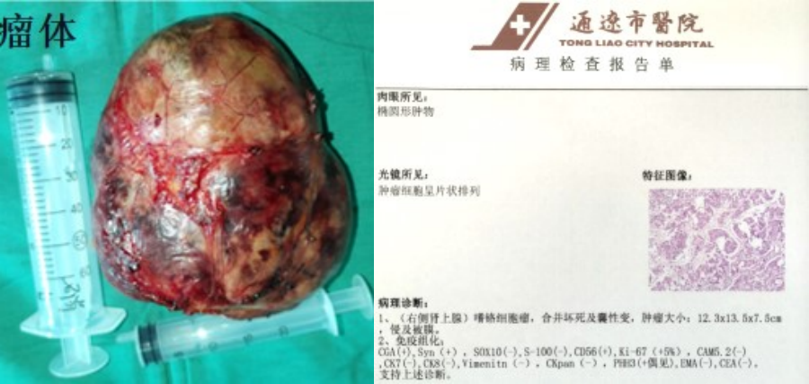 患者罗某,女,56岁,经检查发现巨大肾上腺肿物,且儿茶酚胺中肾上腺素升高,达到基础值的3倍,慕名找到我院泌尿外科负责人徐志强就诊。根据病史、影像资料,化验指标等诊断为右侧肾上腺巨大嗜铬细胞瘤。
