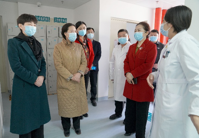 4月7日上午,市人大常委会副主任包兰芳一行人莅临我院调研指导新冠疫情防控工作,市卫健委党组书记、主任陈静,副主任卜繁强等陪同调研。