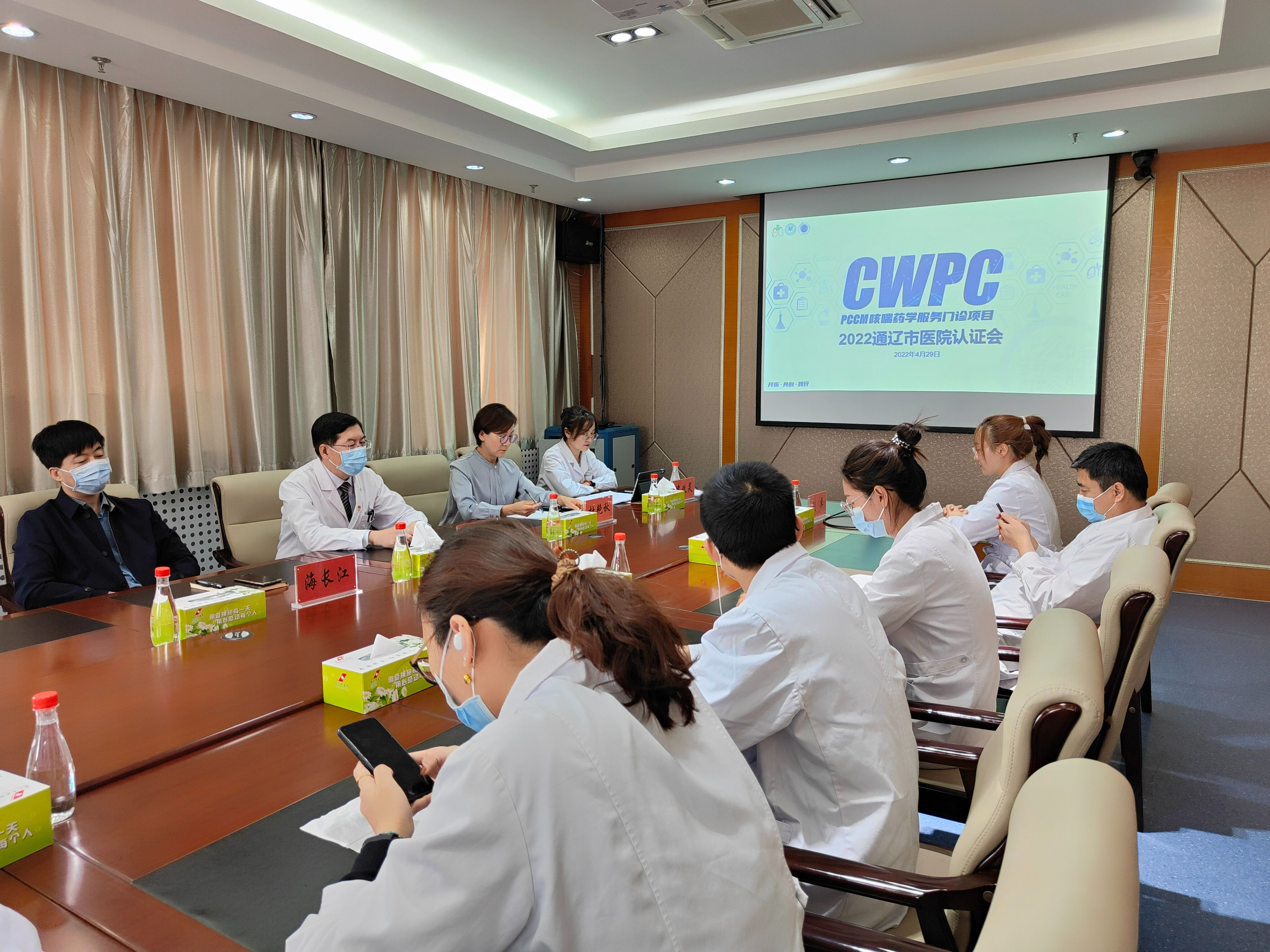 内蒙古自治区人民医院药学处副处长杨宏昕,内蒙古包钢医院院长助理、药学部部长高柏青2位专家参与认证。通辽市医院副院长杜艳秋出席会议,呼吸与危重症医学科主任韩向中、药剂科负责人侯改灵以及药剂科全体临床药师、骨干调剂药师参加会议。