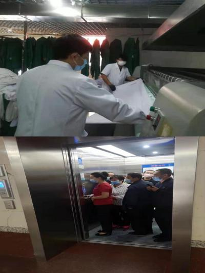 为尽量减少施工对医院患者就医的影响,总务科利用假期时间加班加点抢工期、赶进度,为制氧机房的新增设备铺设电缆,对医院破损道路进行修缮。除此之外,总务科水、电班积极为临床保障正常水电供应,电梯班工作人员热情为患者服务,安全护送患者到达病区,洗涤中心工作人员完成临床一线下收、下送工作……每一个瞬间,都能看到总务人员忙碌的身影。