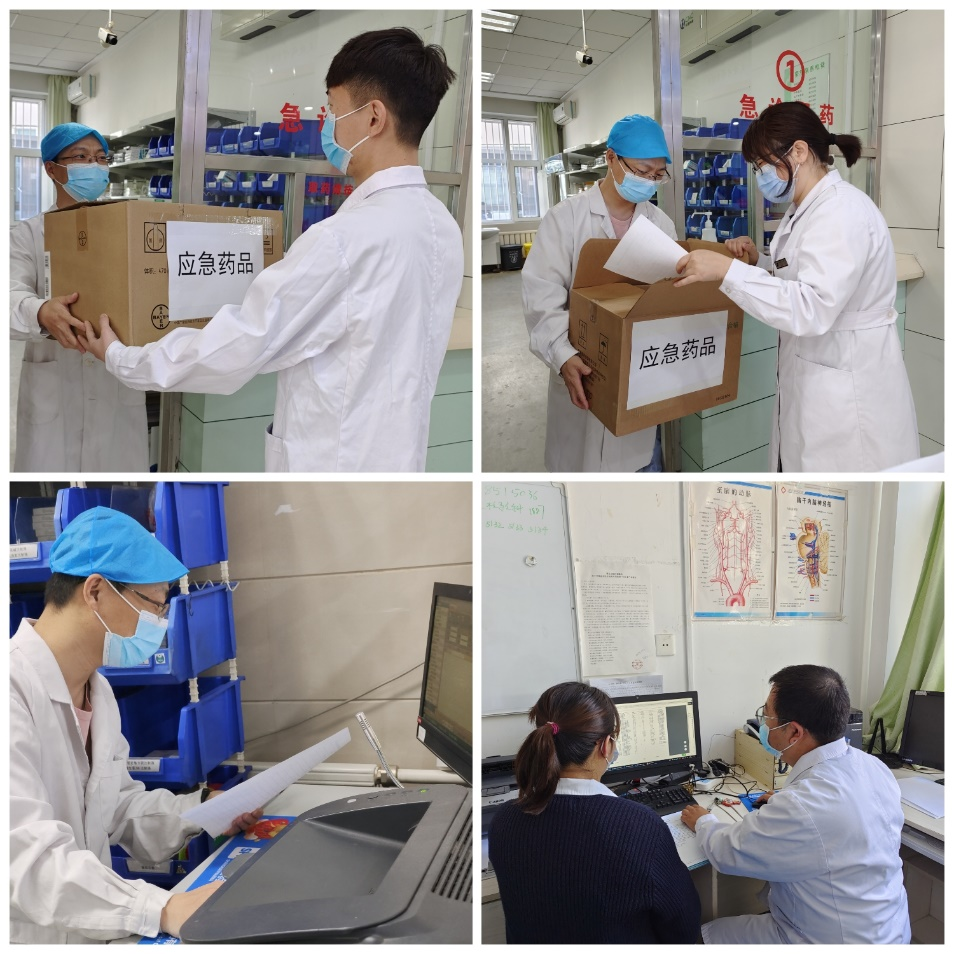随后,演练正式开始。通辽市某地发生火灾,多人受伤紧急入院,急诊药房应急药品储备不足,需启动突发事件保障药品配送等情况。药剂科接到东院区急诊科急需大量应急药品的紧急通知后,药品采购人员立即通过系统调取全院药品库存,发现储备不足,第一时间联系药库以及其他药房做调拨处理,同时电话联系配送企业,要求2小时内必须将急抢救药品送到,并将该情况向药剂科负责人汇报,请求启动应急预案,请药库、药房、采购部门及调剂部门迅速协调,做好药品保障工作。启动“紧急配送”服务后,配送企业1小时后将应急药品送达我院,库管员核对药品相关信息无误,将药品及时发到科室,保障临床抢救工作的顺利开展。同时,我院临床药师到急诊科现场参与会诊以及用药监护工作。