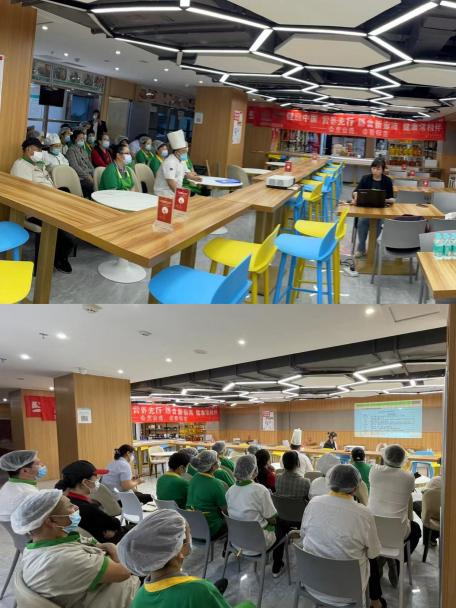 5月20日下午,营养科对健康食堂的工作人员进行膳食营养知识培训,解答合理膳食的各种营养素构成,举例说明一日三餐的食谱设计,以达到既可满足病人营养和治疗需要,又可增进病人的食欲,对病人的健康恢复起到药物所起不到的作用。