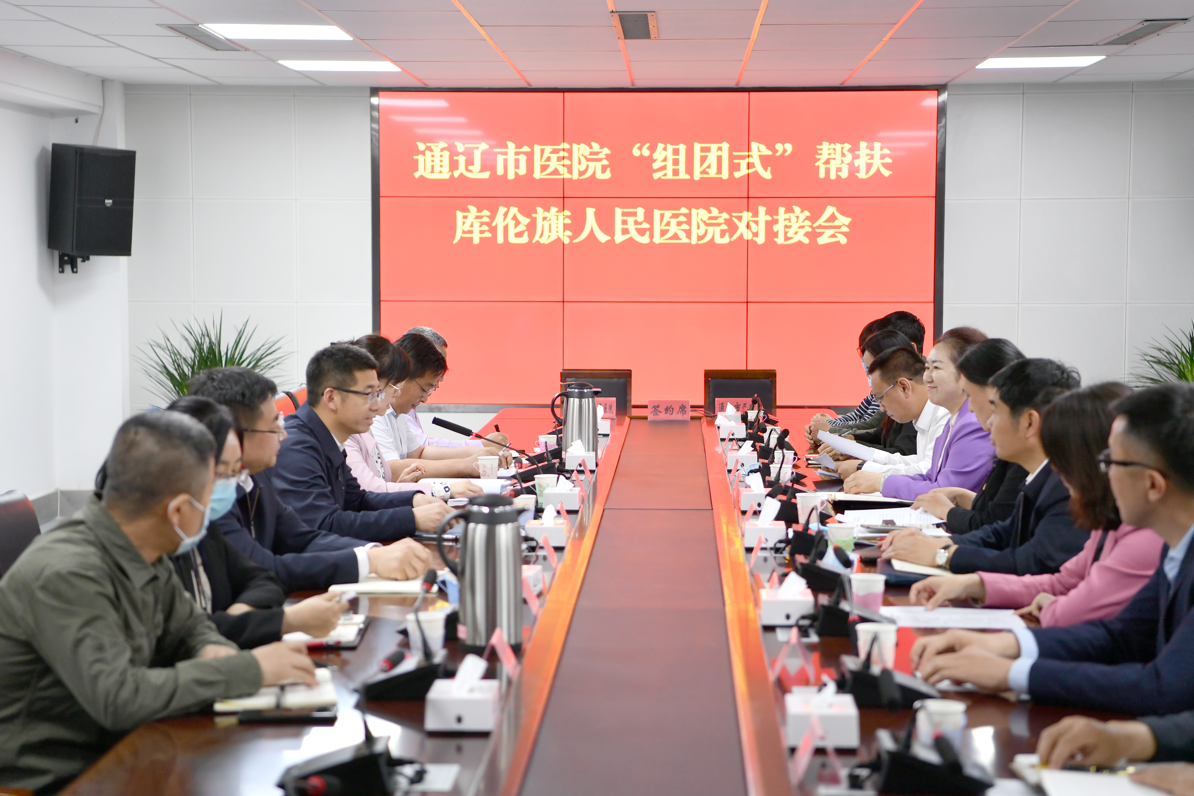 对接仪式于下午四点在库伦旗政府举行。旗委副书记、旗政府旗长王薇主持会议。在座谈中,市医院党委书记金洁表示作为通辽市唯一的一家国家三级甲等综合公立医院,市医院有责任、有义务投入到帮扶工作中来,将以“四个保证”全面保障此次“组团式”帮扶工作落地见效。即提高政治站位,强化政治保证;将帮扶工作纳入医院目标责任制管理和个人考评中,完善措施保证;做好多方联动工作,解除帮扶队员的后顾之忧,提供好后勤保证;形成长效机制,建立制度保证。2025年前以“强二甲”为目标,建强“五大中心”,使受援医院接近或达到三级医院医疗服务能力,满足县域人民群众医疗服务需求。