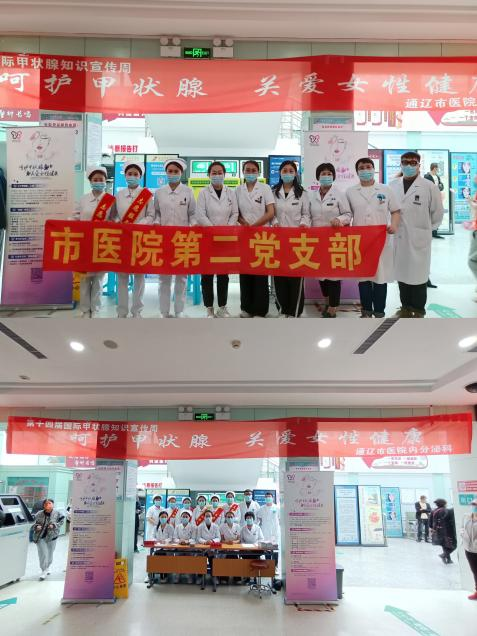 今年的5月23日~29日是第十四届国际甲状腺知识宣传周,为普及民众对于甲状腺疾病知识的了解,提高和改善甲状腺疾病的就诊率和治疗率,在比奉献、送健康中夯实“三比三创”内在要求,5月25日,我院第二党支部、内分泌科在门诊开展以“呵护甲状腺 关爱女性健康”为主题的甲状腺相关疾病的义诊、科普宣传活动。