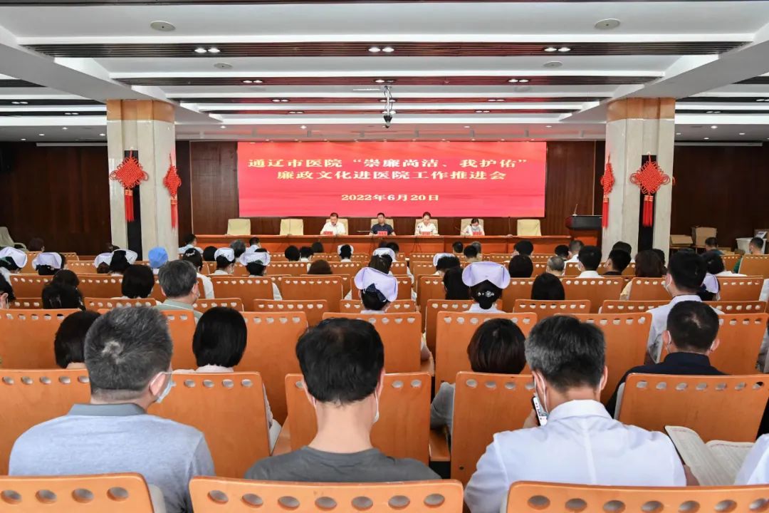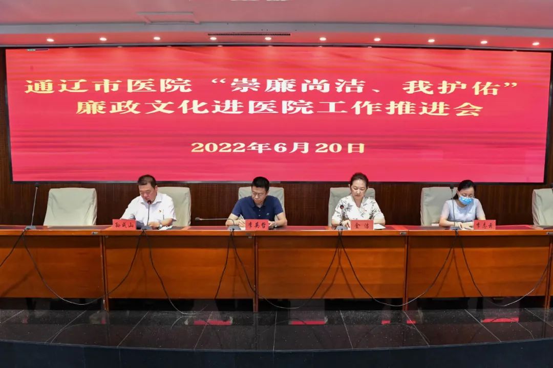 会上传达学习了全市卫生健康系统《“崇廉尚洁·我护佑”廉洁文化进医院推进方案》,解读了通辽市医院《“崇廉尚洁·我护佑”廉洁文化进医院推进方案》,对全院“崇廉尚洁·我护佑”廉洁文化进医院工作进行安排部署。